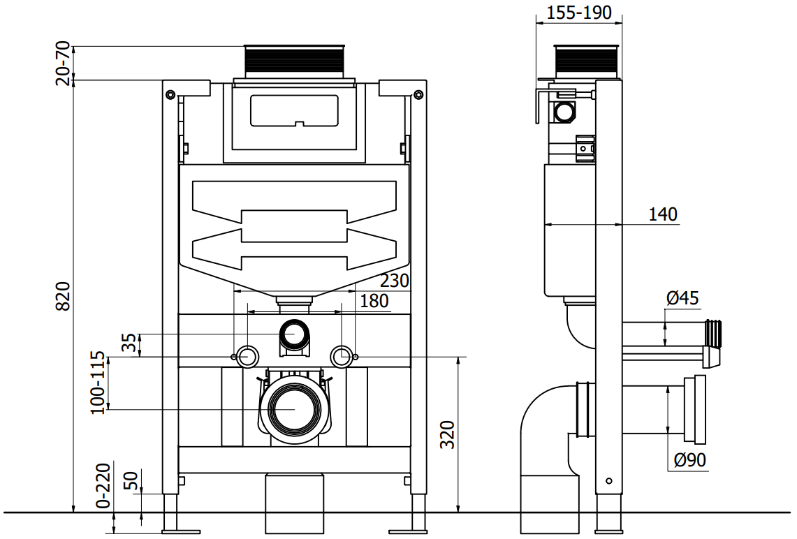 La posibilidad de ajustar la altura del bastidor permite una mejor adaptación a diferentes condiciones técnicas en el baño. El rango de ajuste flexible proporciona comodidad de instalación y logra la altura óptima del bastidor.