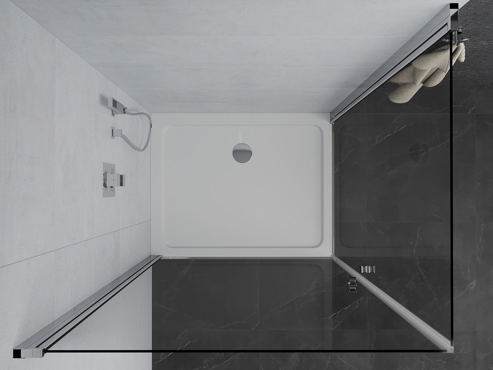 Mexen Pretoria Duo cabina de ducha abatible 90 x 80 cm, transparente, cromo + plato de ducha Flat - 852-090-080-01-02-4010