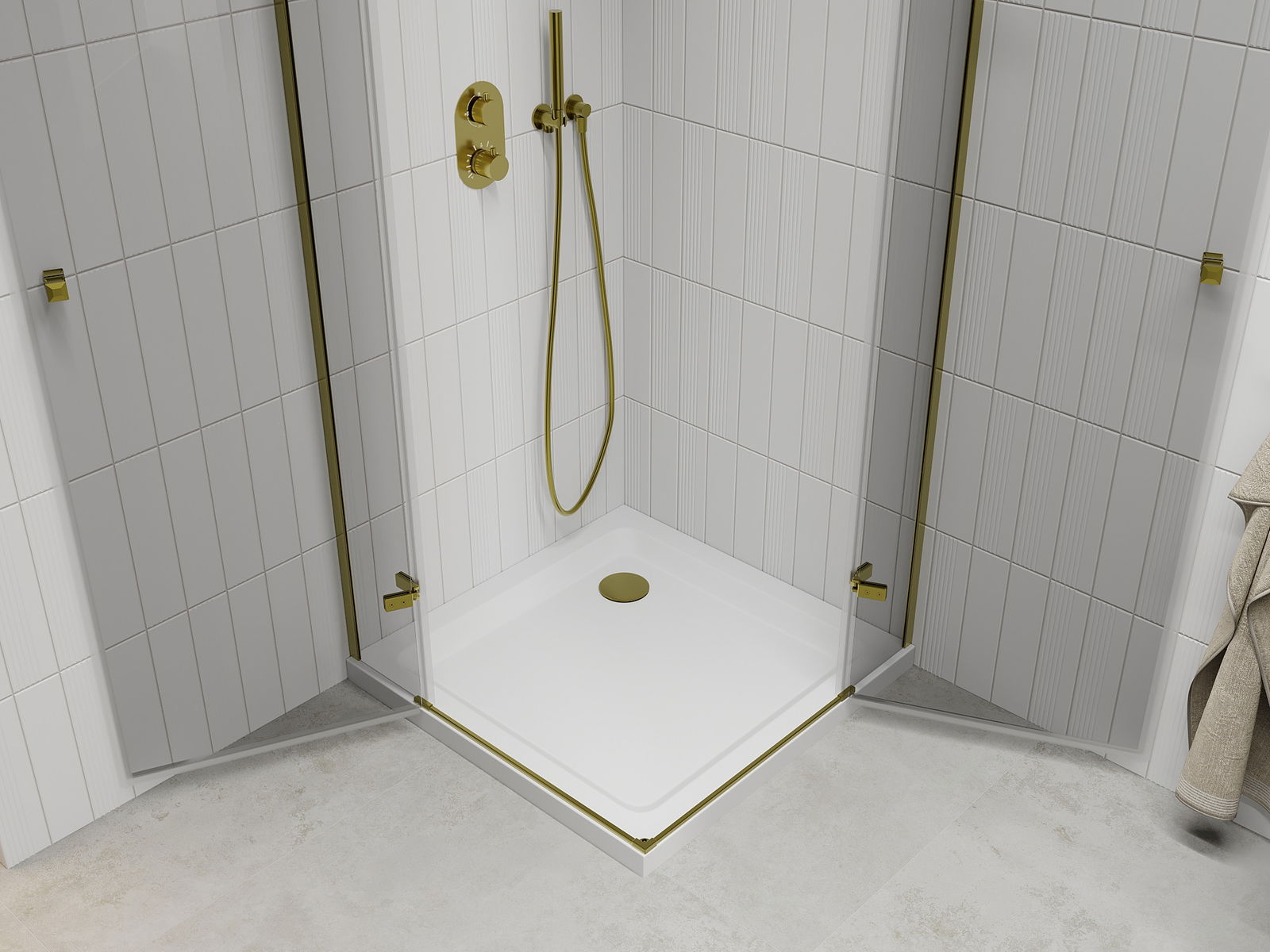 Las puertas abatibles permiten la máxima libertad durante el uso. Cuentan con bisagras sólidas hechas de material duradero, que no presentan dificultades para mantener limpias y permiten un fácil acceso al interior de la cabina.