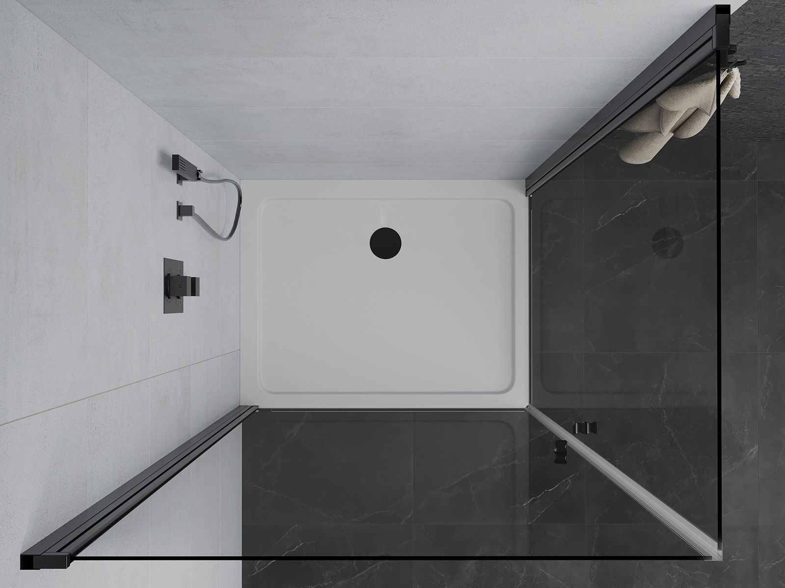 Mexen Pretoria Duo cabina de ducha abatible 80 x 70 cm, transparente, negra + plato de ducha Flat - 852-080-070-70-02-4010B