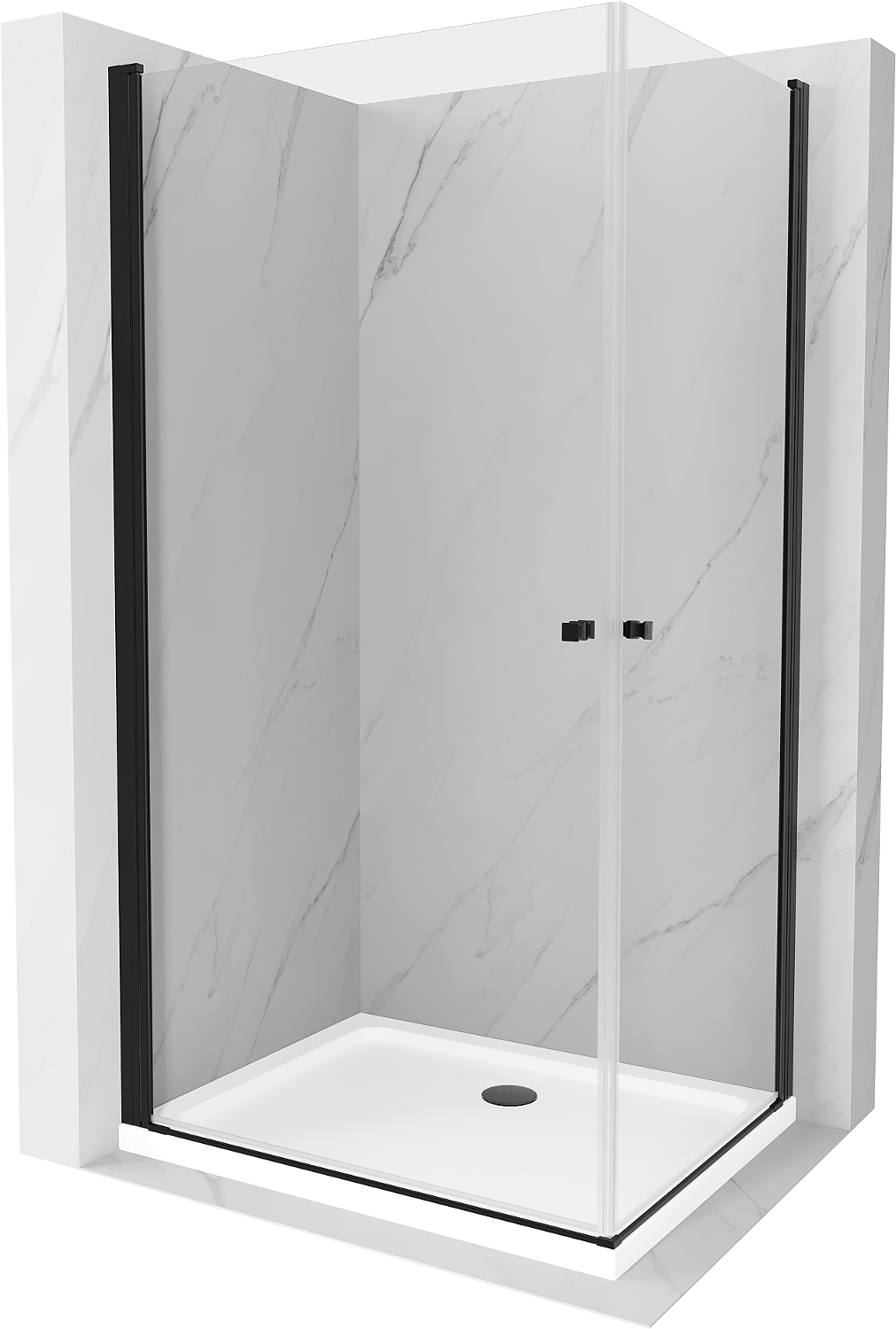 Mexen Pretoria Duo cabina de ducha batiente 90 x 80 cm, transparente, negra + plato de ducha Flat - 852-090-080-70-02-4010B