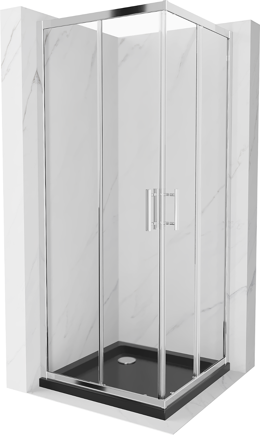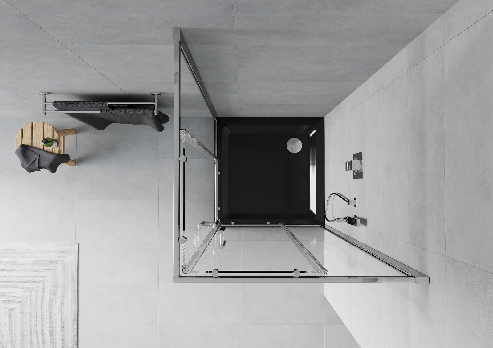 Mexen Rio cabina de ducha cuadrada 80 x 80 cm, transparente, cromo + plato de ducha Flat, negro - 860-080-080-01-00-4070