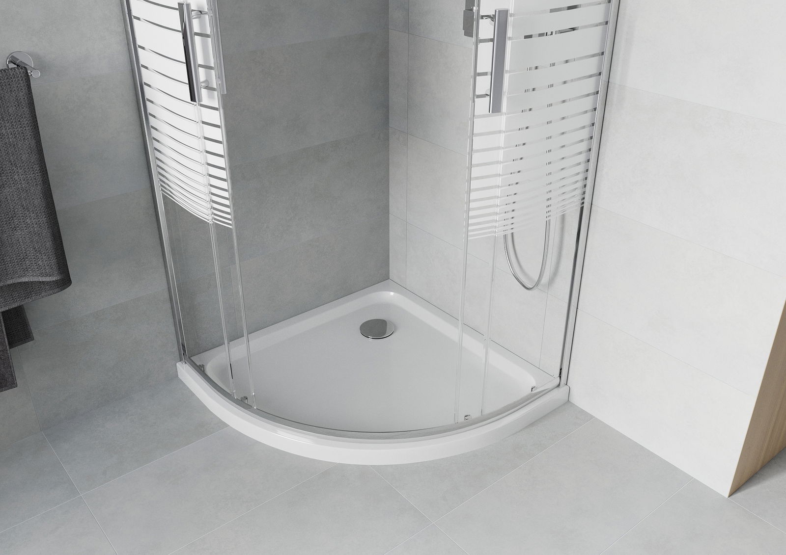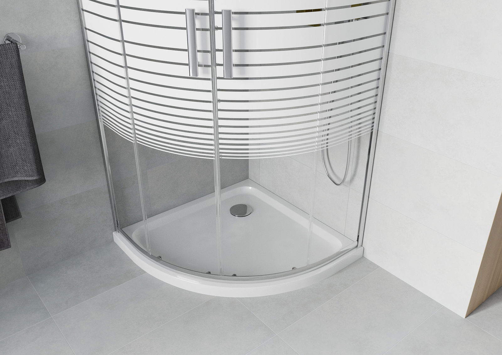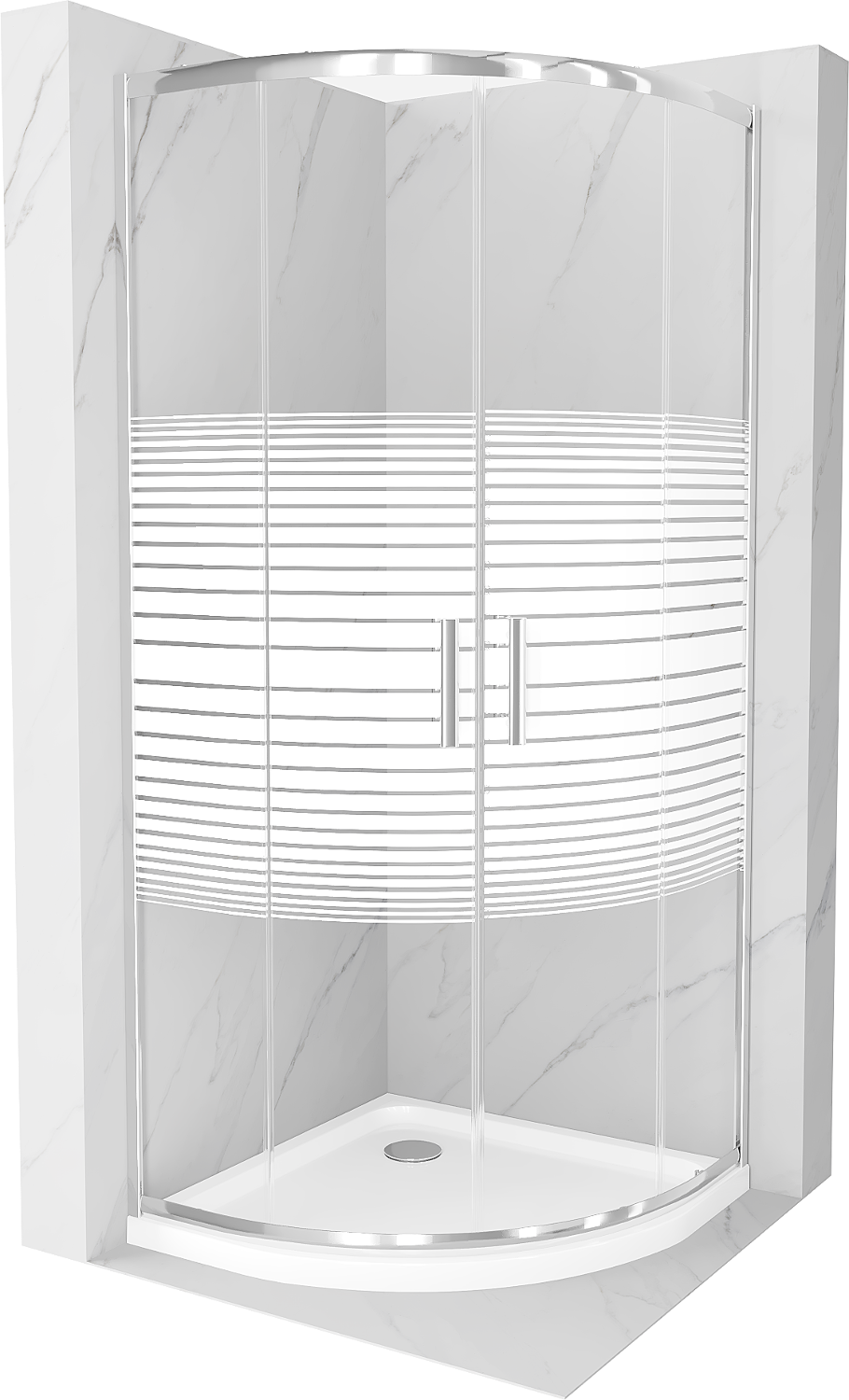 Mexen Rio cabina de ducha semicircular 90 x 90 cm, franjas blancas, cromo + plato de ducha Flat, blanco - 863-090-090-01-20-4110