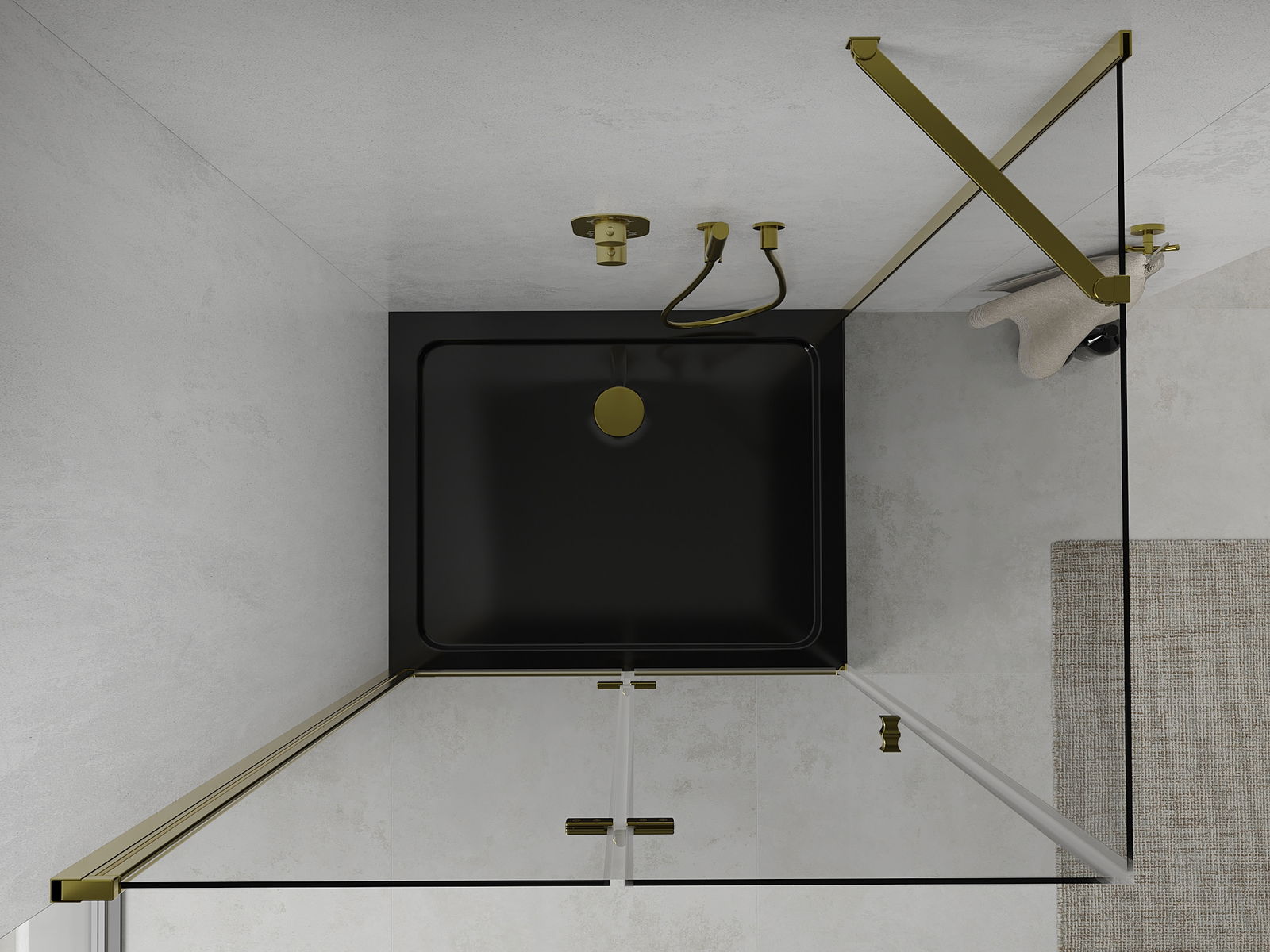 Mexen Lima cabina de ducha plegable 90 x 100 cm, transparente, dorada + bandeja Flat, negra - 856-090-100-50-00-4070G