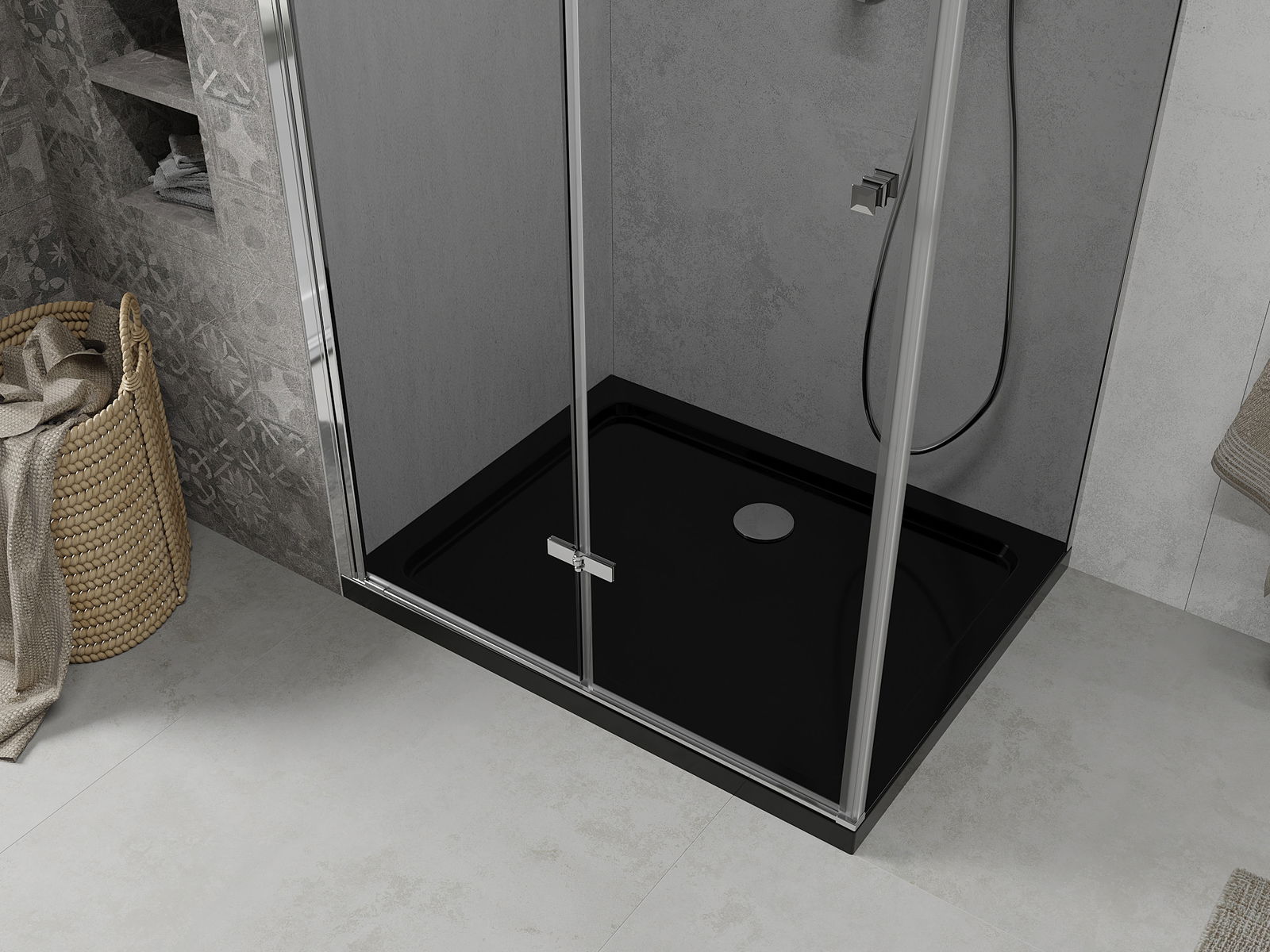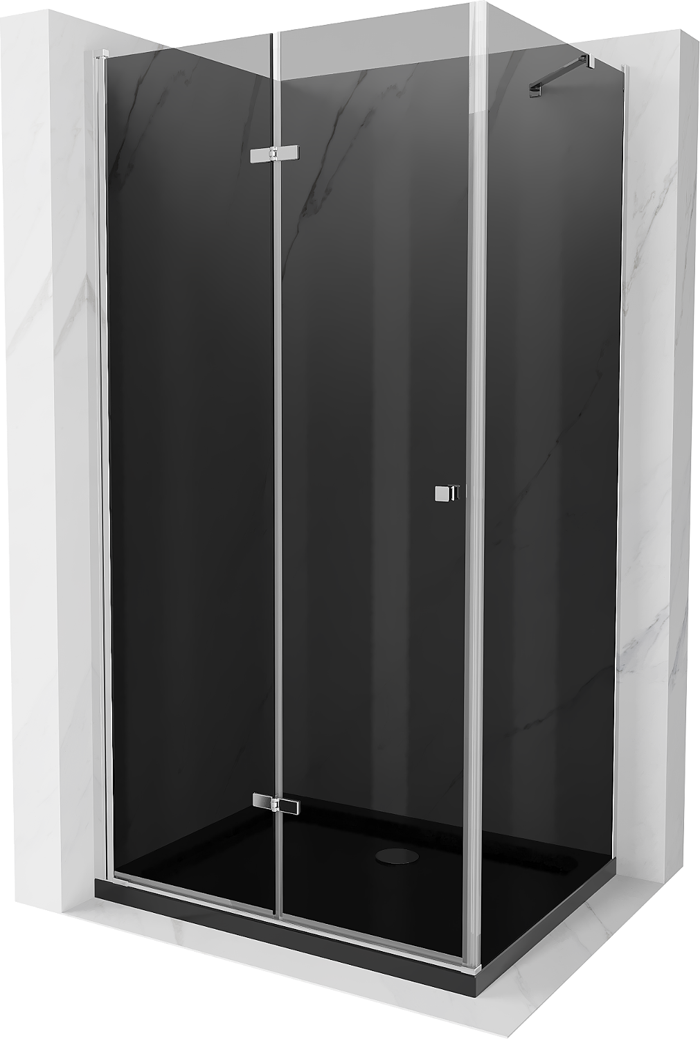 Mexen Lima cabina de ducha plegable 100 x 80 cm, grafito, cromo + plato de ducha Flat, negro - 856-100-080-01-40-4070