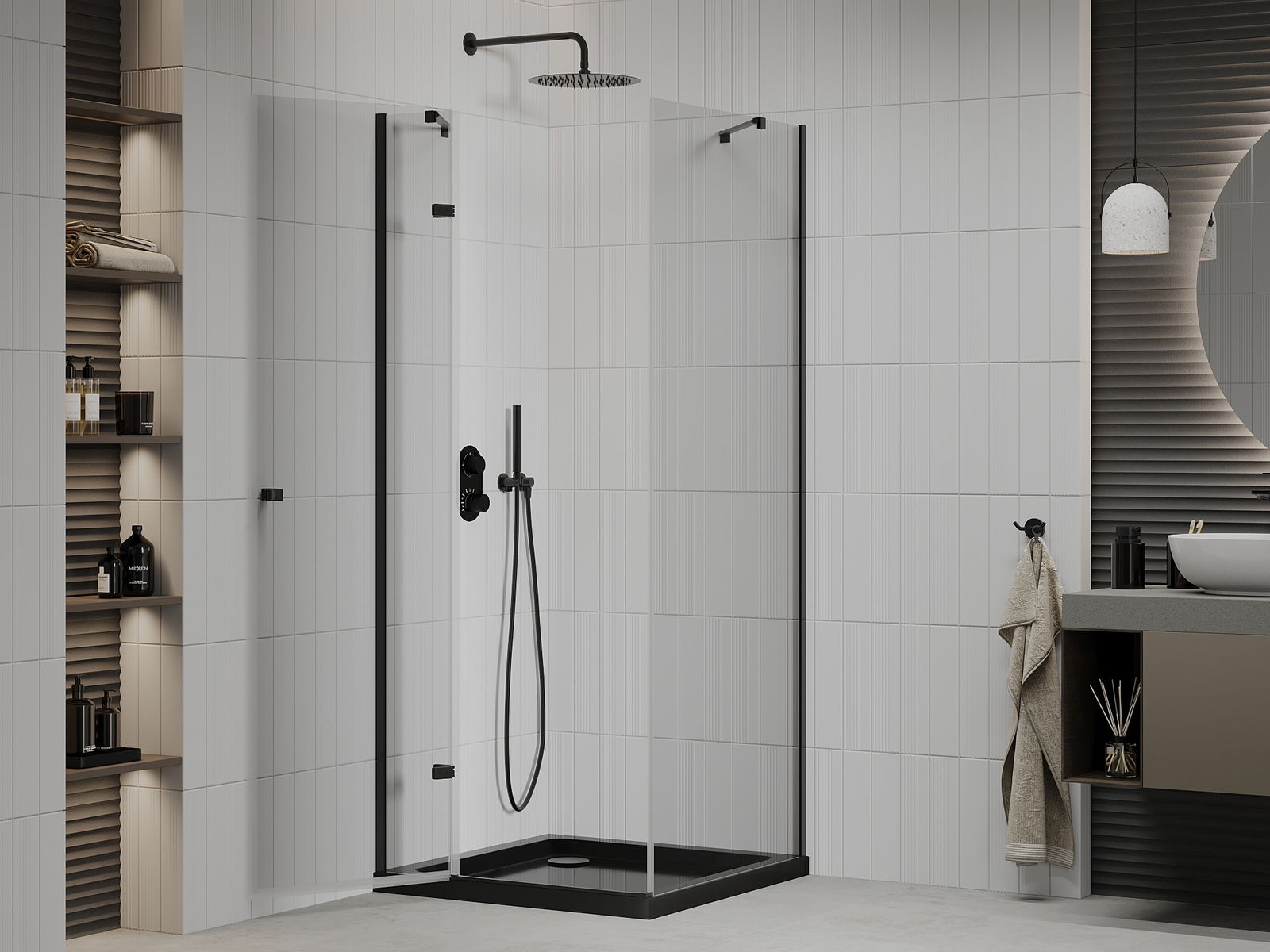 Mexen Roma cabina de ducha abatible 80 x 80 cm, transparente, negro + plato de ducha Flat, negro - 854-080-080-70-00-4070B