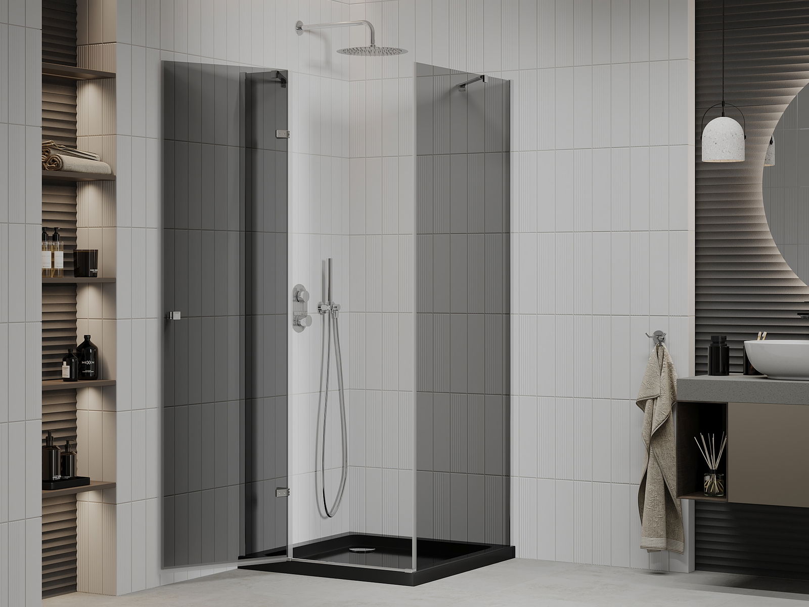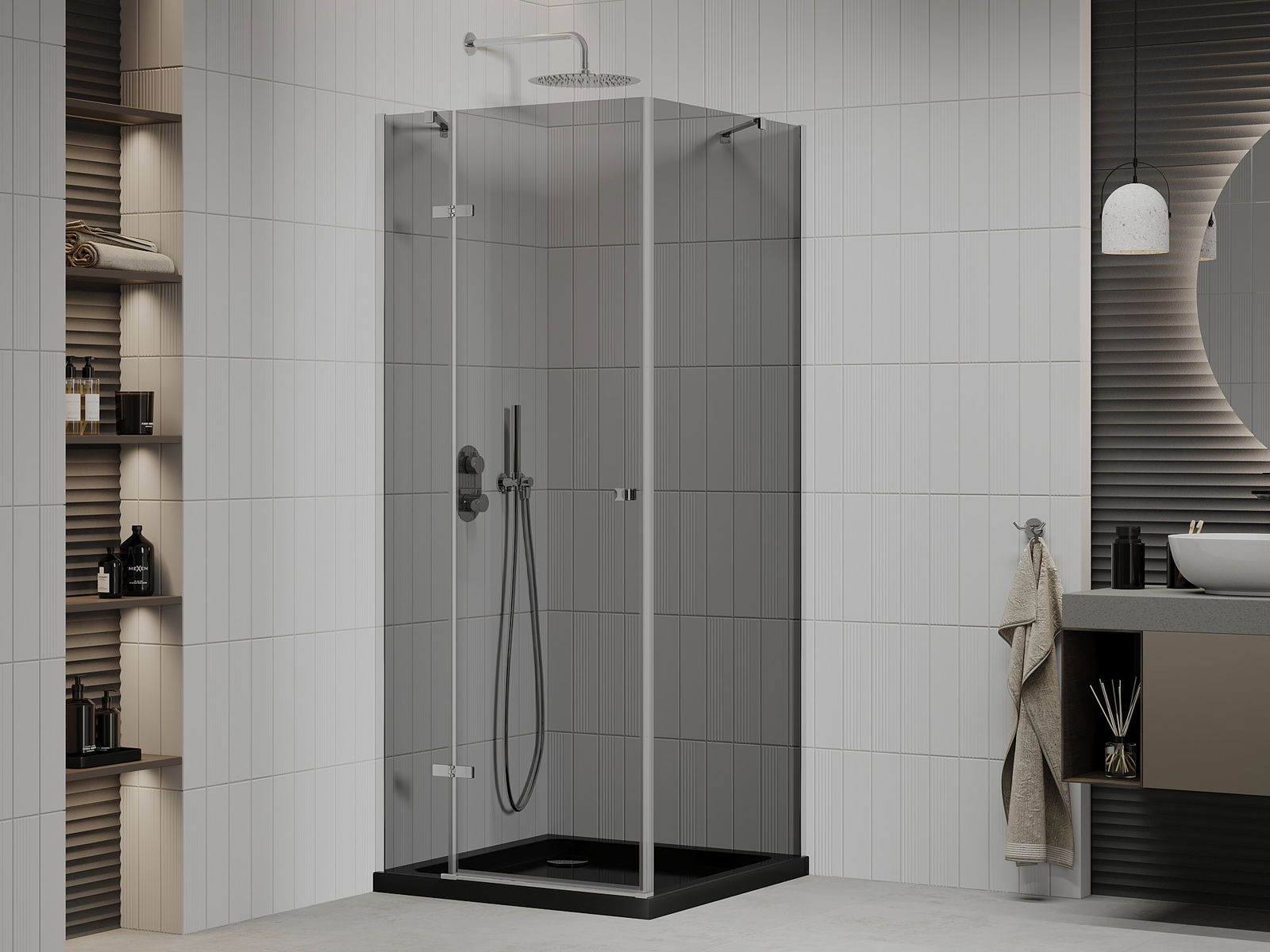 Mexen Roma cabina de ducha abatible 80 x 80 cm, grafito, cromo + plato de ducha Flat, negro - 854-080-080-01-40-4070