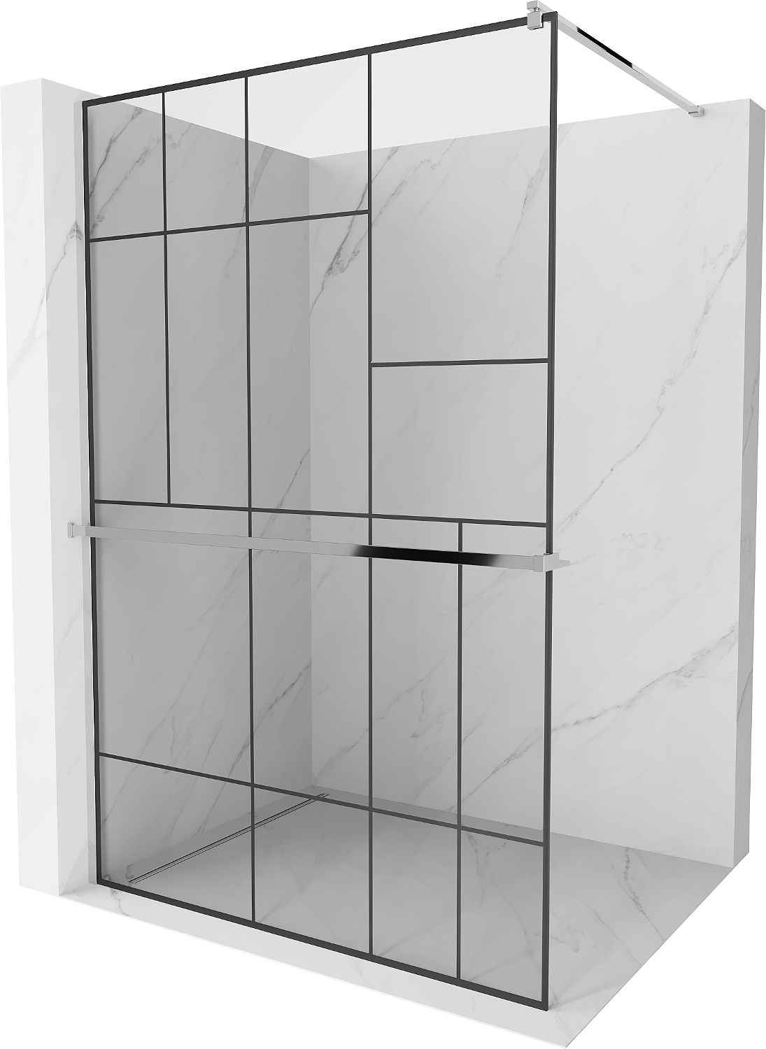 Mexen Kioto+ panel de ducha con estante Walk-in 110 x 200 cm, diseño negro, cromo - 800-110-121-01-78