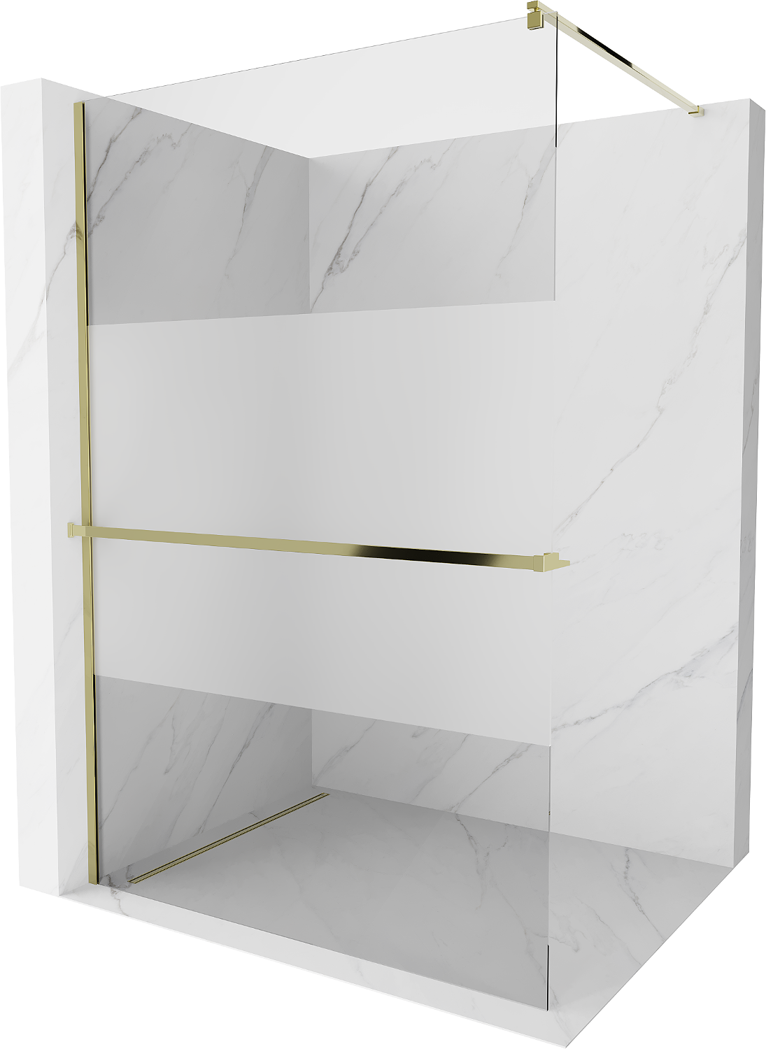 Mexen Kioto+ pared de ducha con estante Walk-in 70 x 200 cm, transparente/escarchado, dorado - 800-070-121-50-35