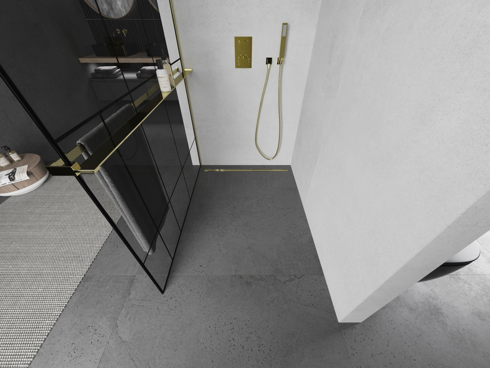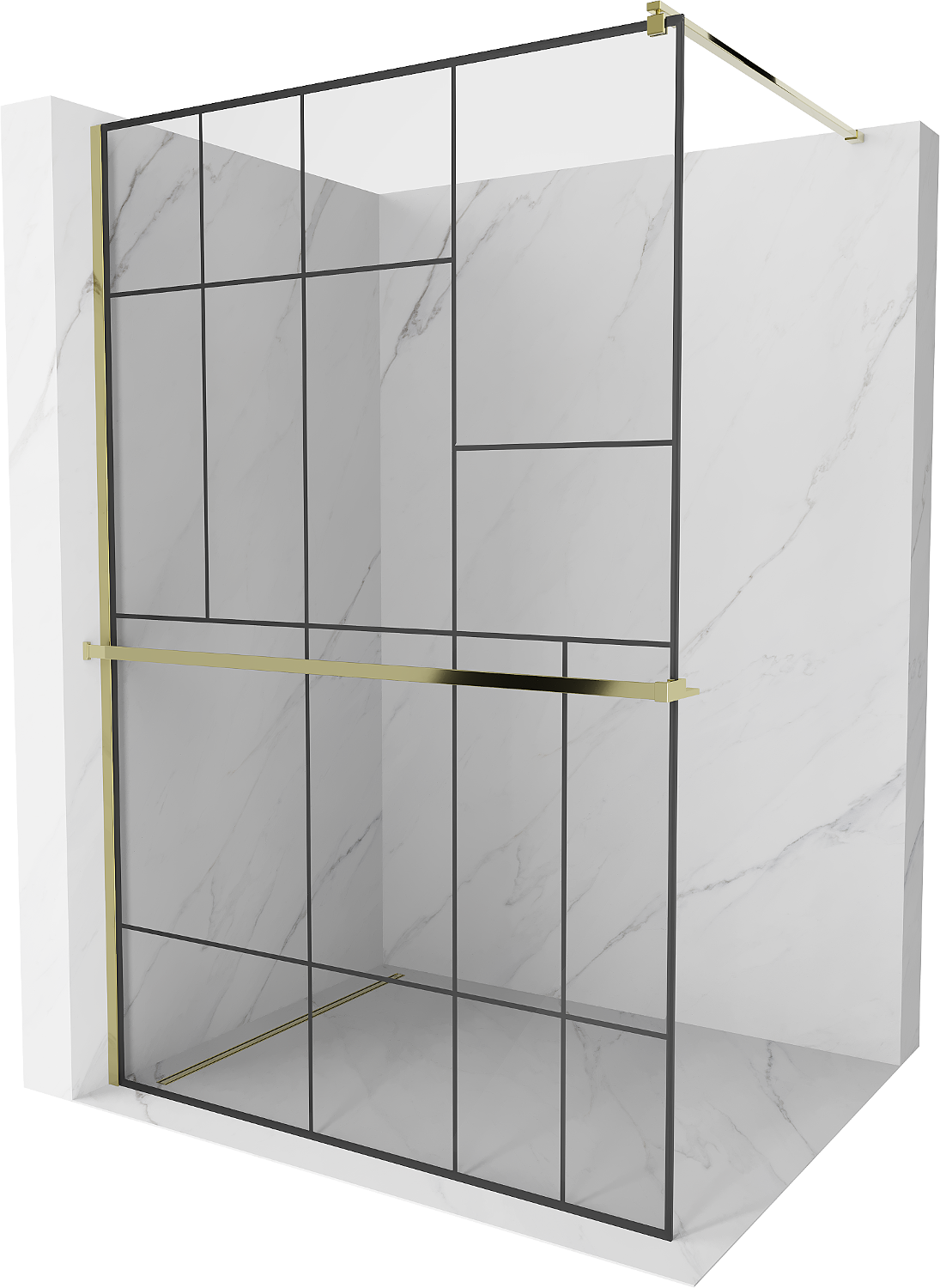Mexen Kioto+ panel de ducha con estante Walk-in 100 x 200 cm, patrón negro, dorado - 800-100-121-50-78