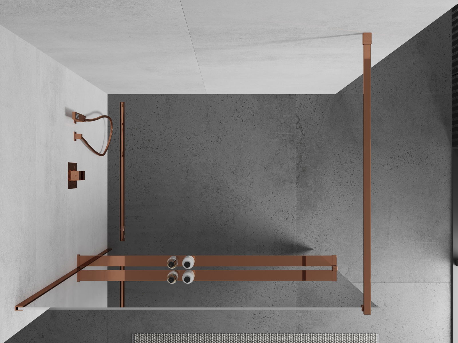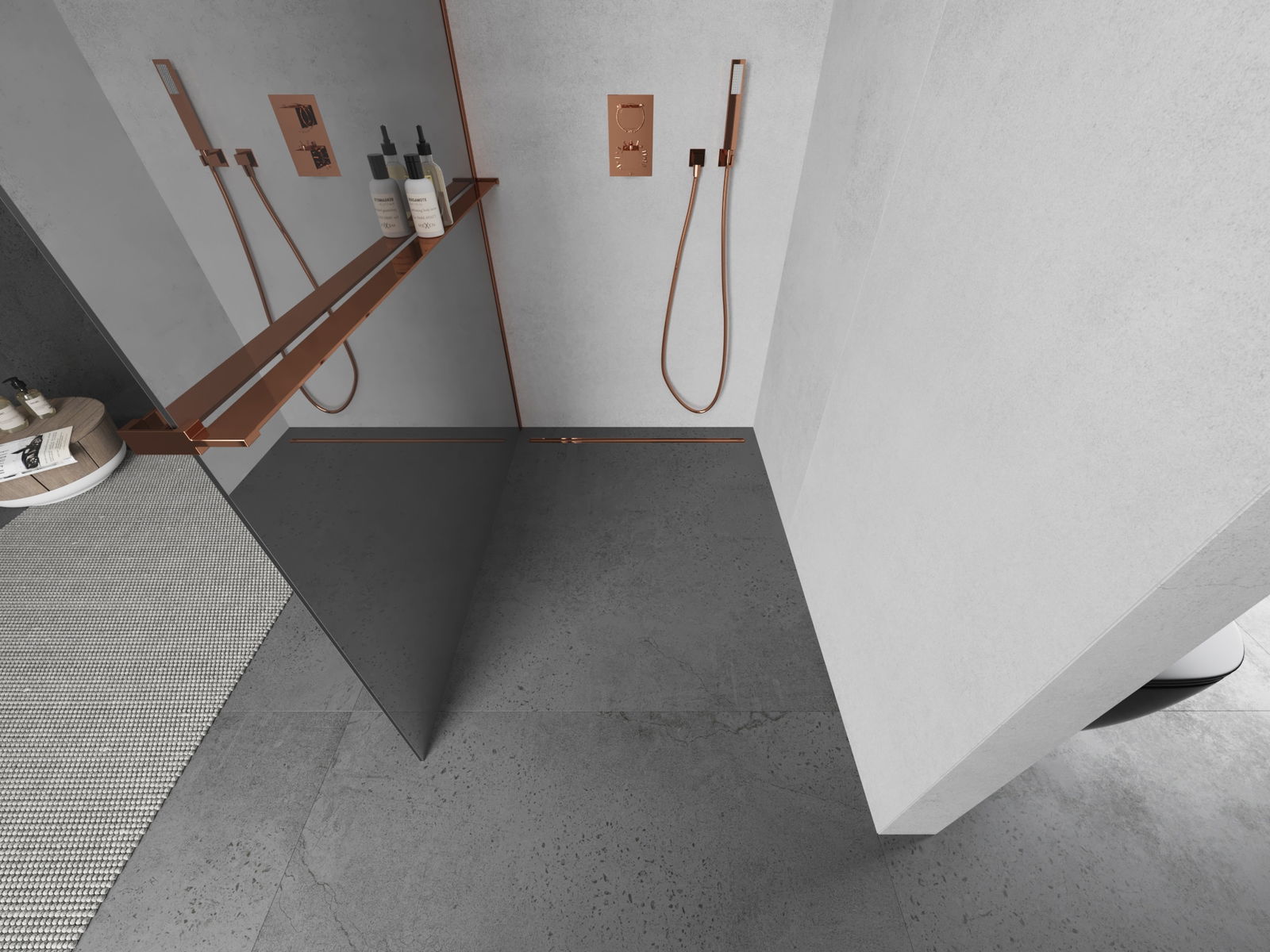 Mexen Kioto+ panel de ducha con estante Walk-in 100 x 200 cm, espejo, oro rosa - 800-100-121-60-50