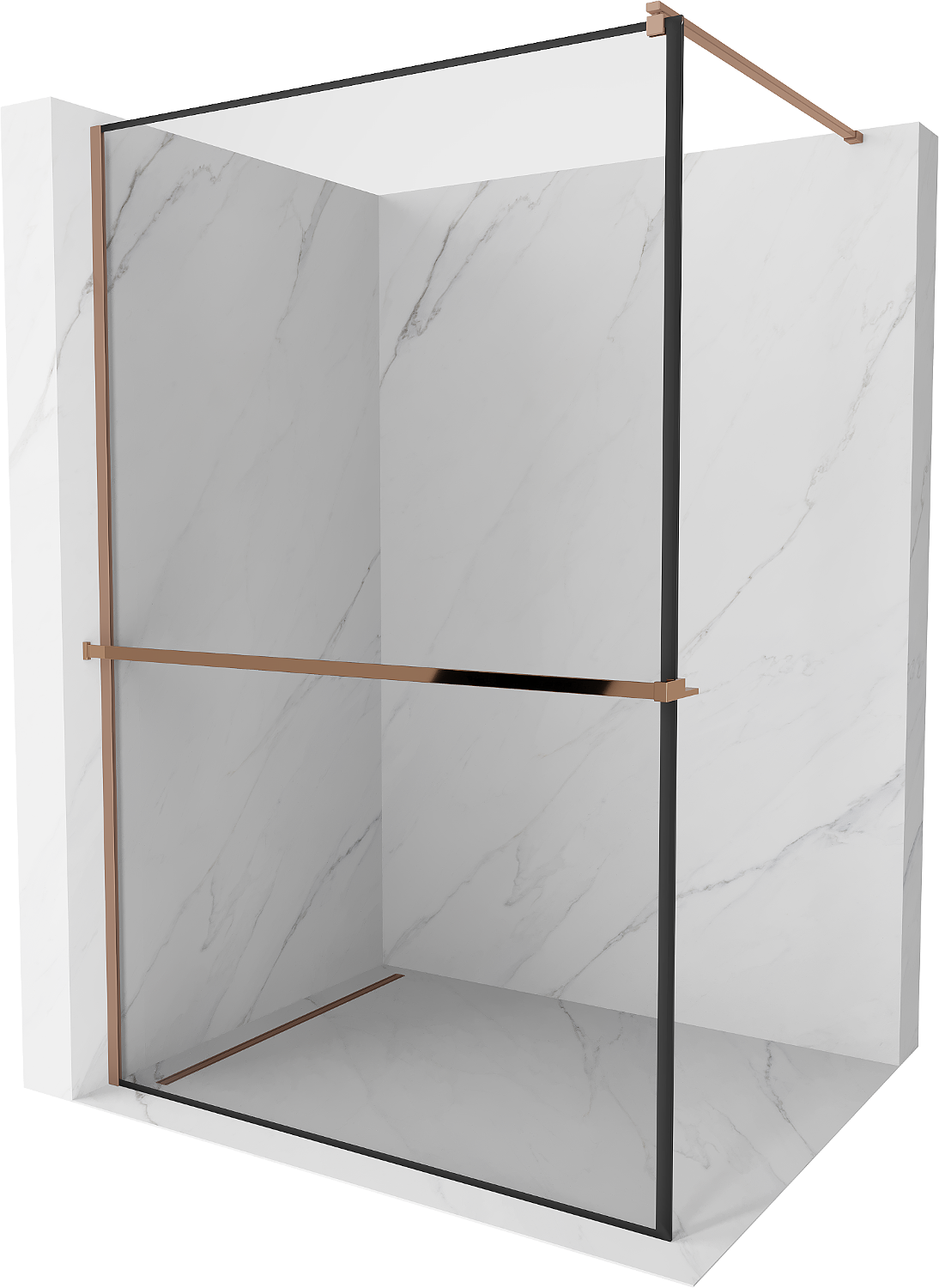 Mexen Kioto+ pantalla de ducha con estante Walk-in 130 x 200 cm, marco negro, oro rosa - 800-130-121-60-70