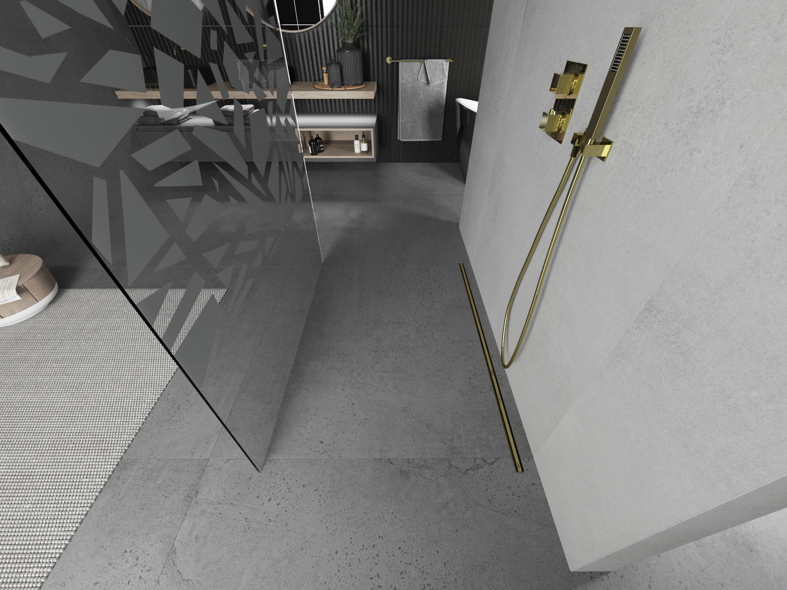 Mexen Kioto mampara de ducha independiente 100 x 200 cm, diseño blanco 8 mm, dorado - 800-100-002-50-85