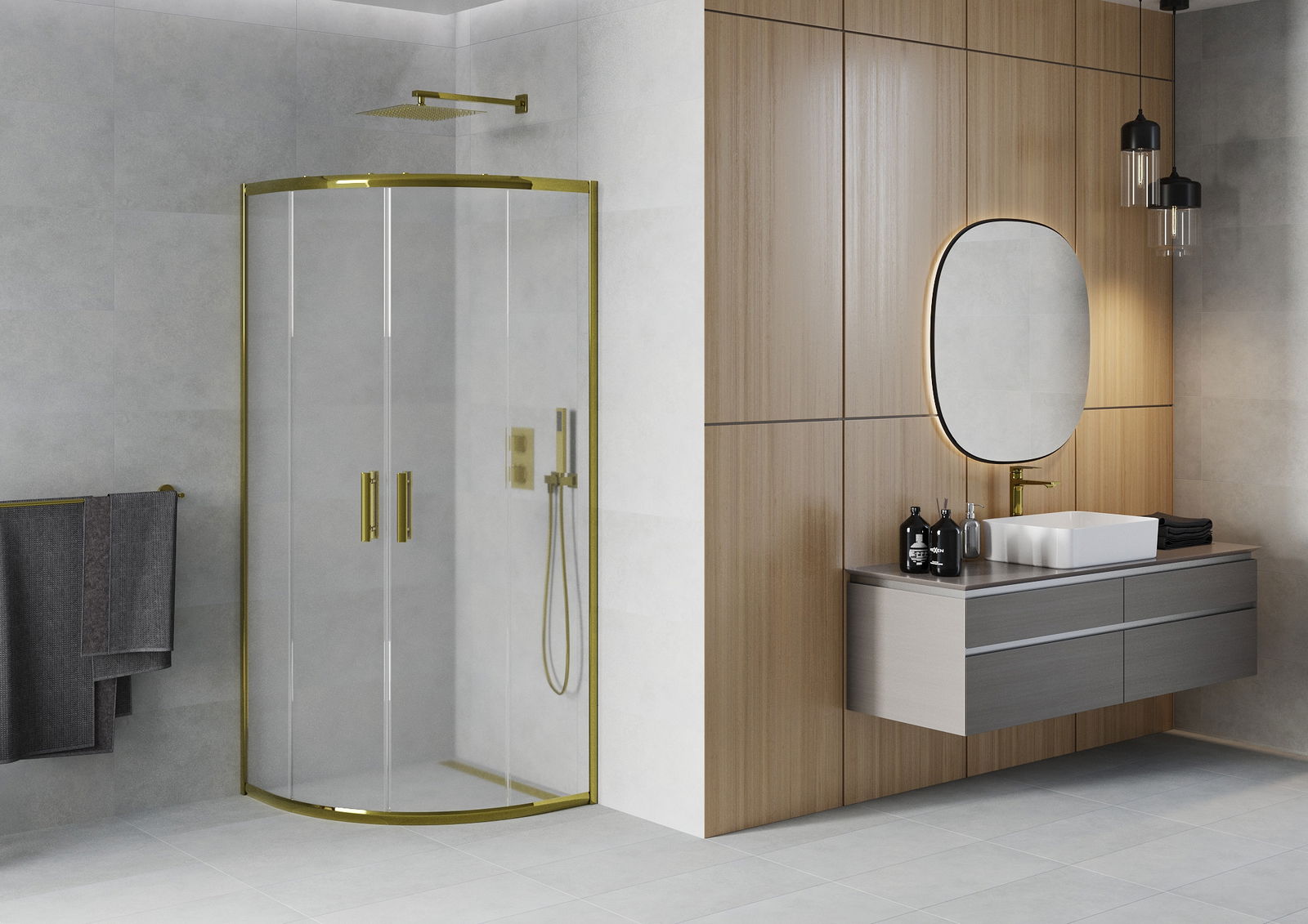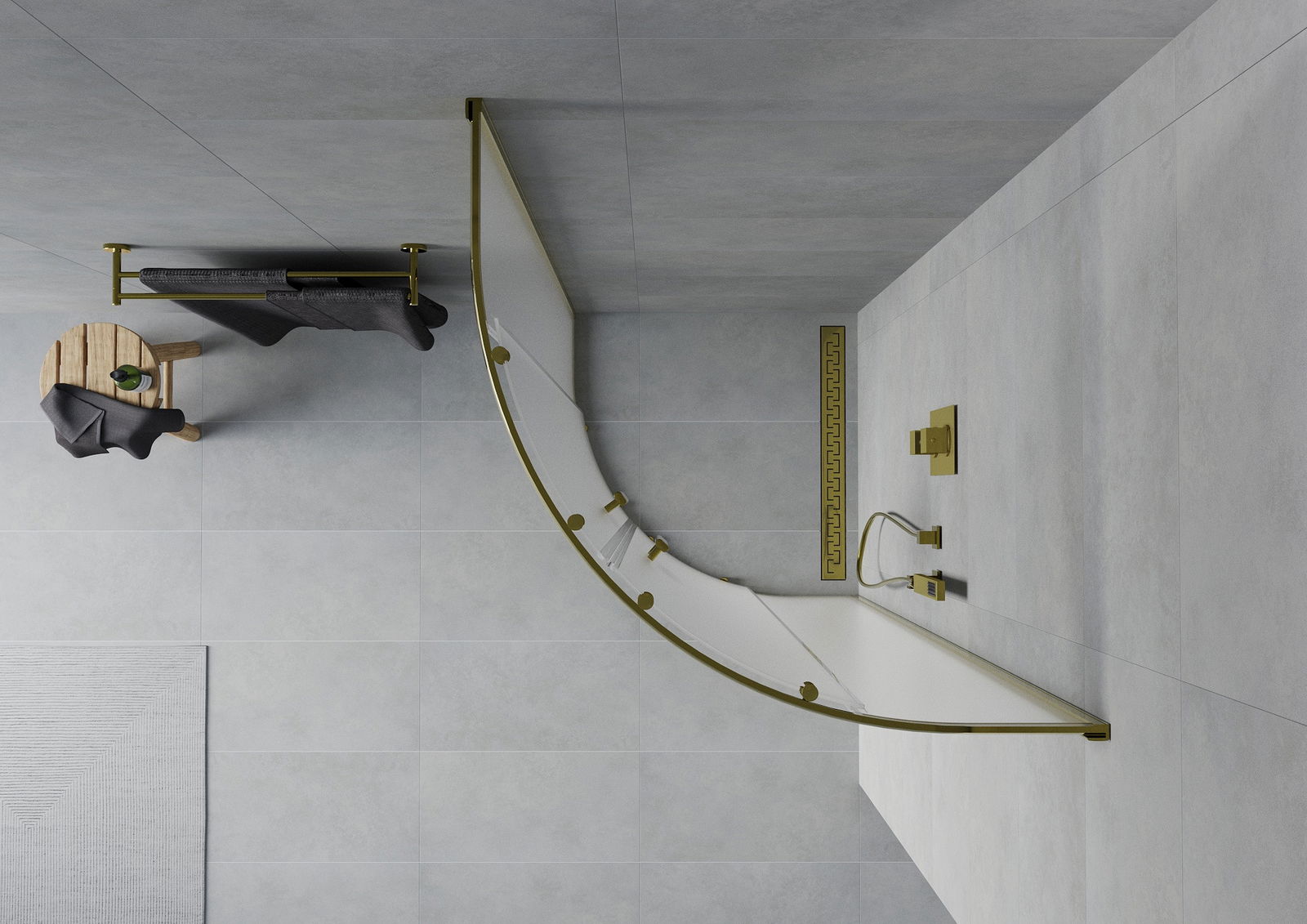 Mexen Rio cabina de ducha semicircular 90 x 90 cm, escarcha, dorado - 863-090-090-50-30