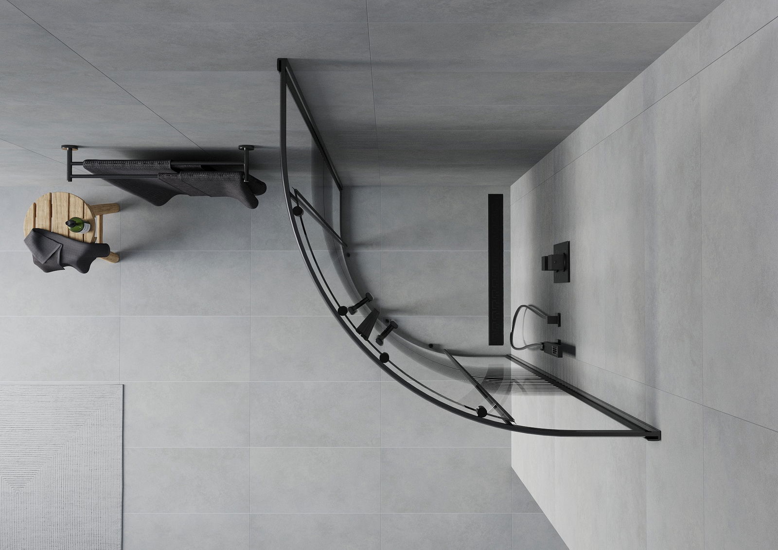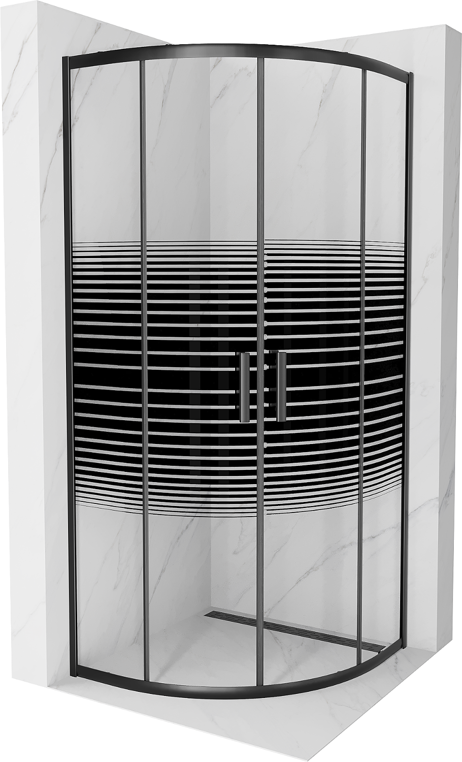 Mexen Rio cabina de ducha semicircular 90 x 90 cm, rayas negras, negra - 863-090-090-70-20