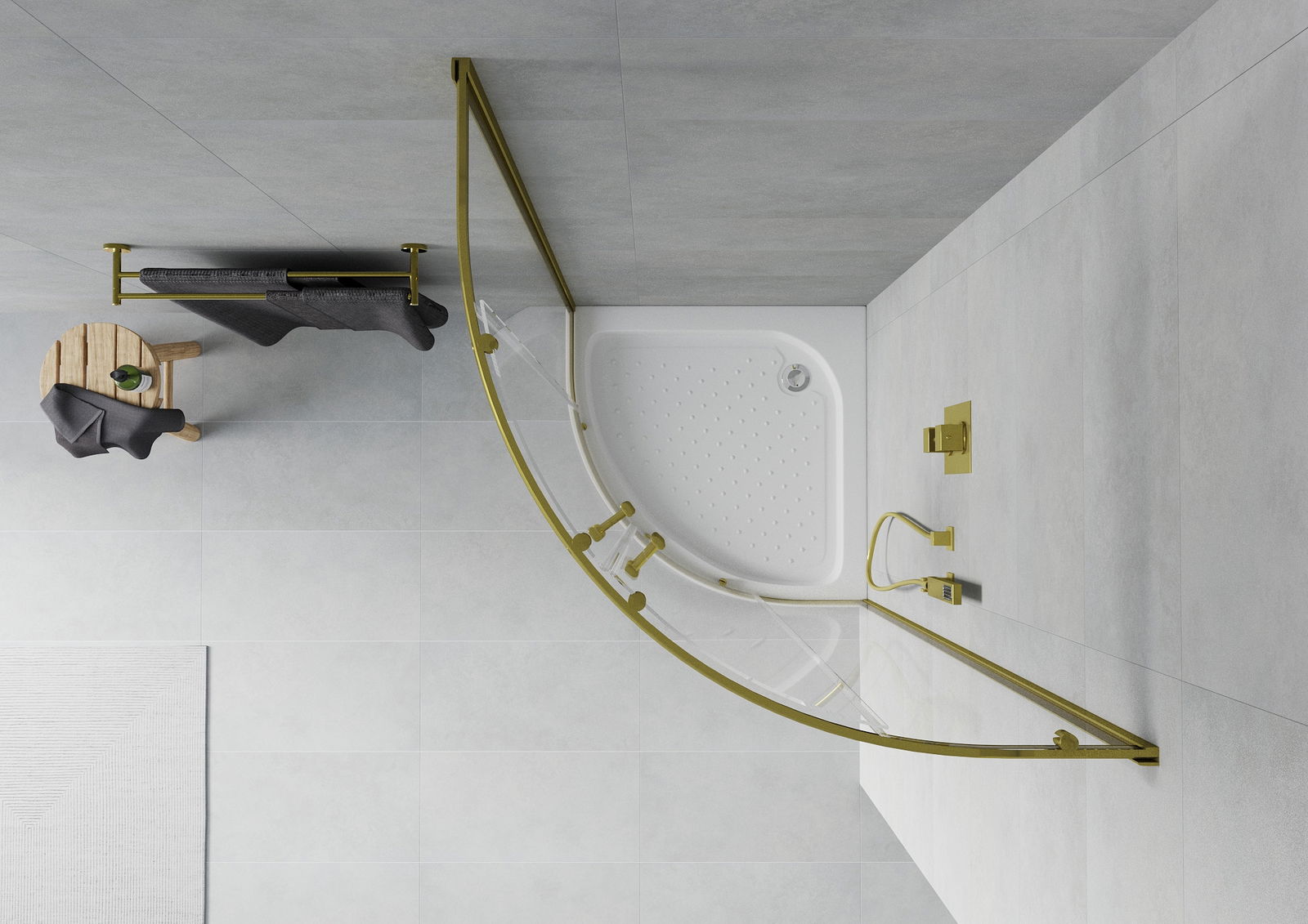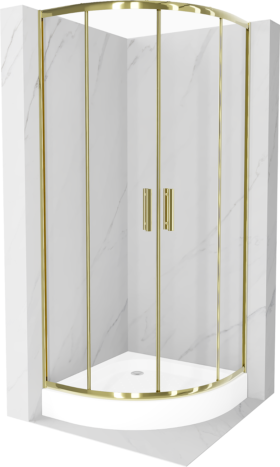 Mexen Rio cabina de ducha semicircular 70 x 70 cm, transparente, dorada + plato de ducha Rio, blanco - 863-070-070-50-00-4710