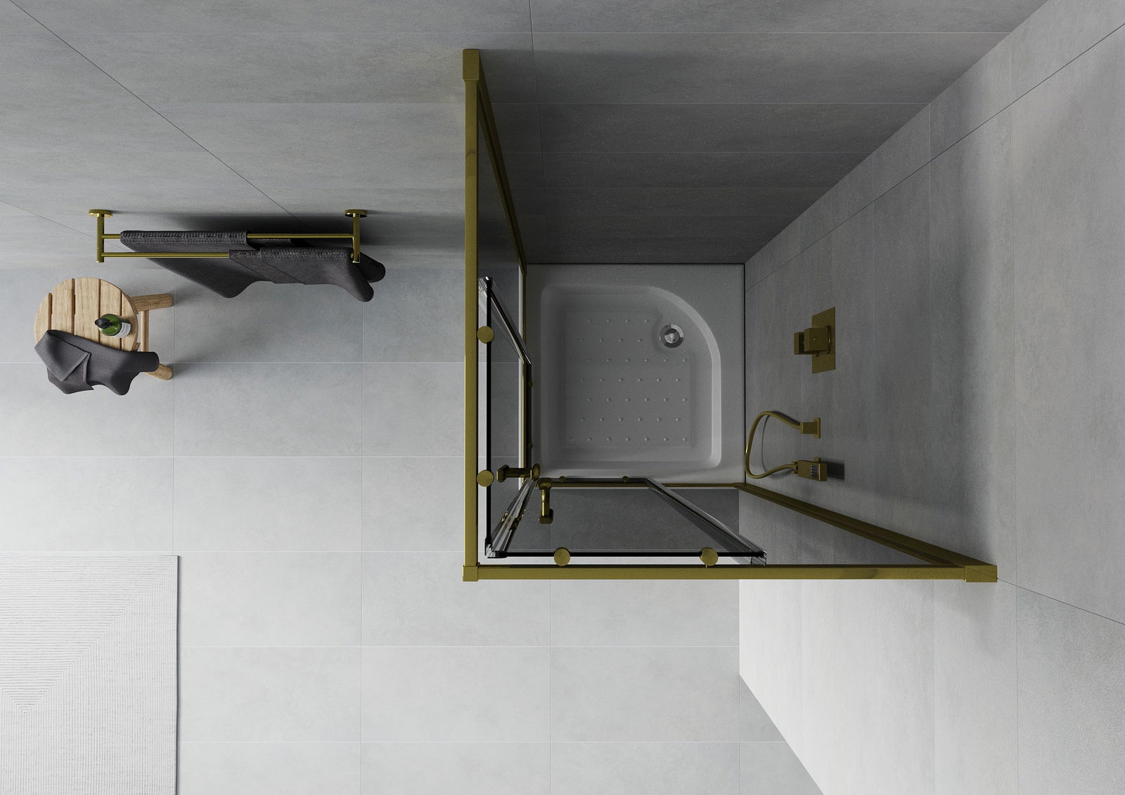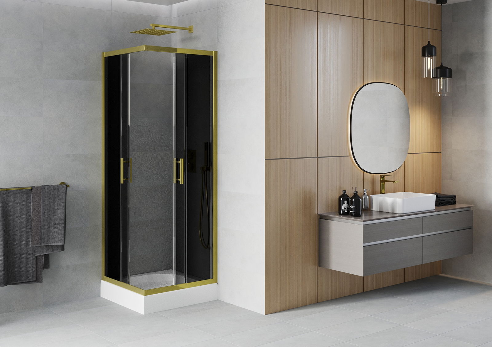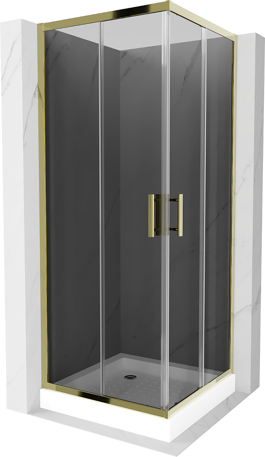 Mexen Rio cabina de ducha cuadrada 80 x 80 cm, grafito, dorado + plato de ducha Rio, blanco - 860-080-080-50-40-4510