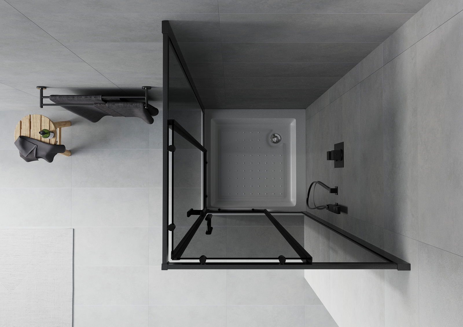 Mexen Rio cabina de ducha cuadrada 70 x 70 cm, grafito, negra + plato de ducha Rio, blanco - 860-070-070-70-40-4510
