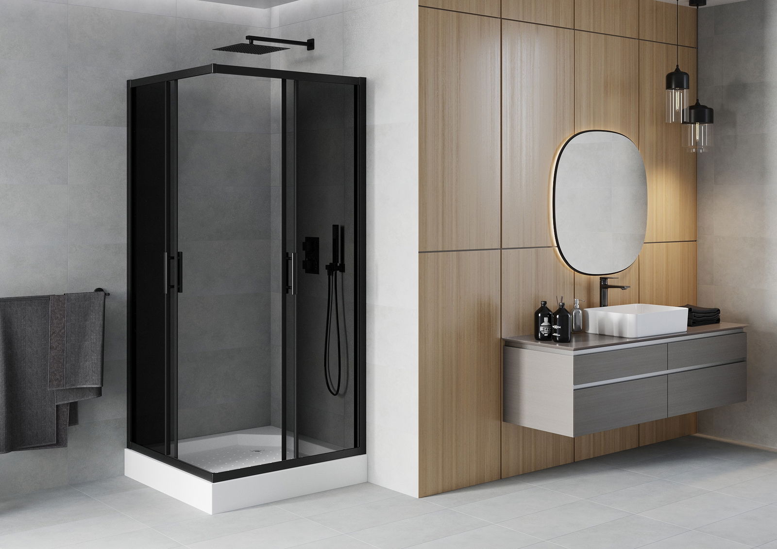 Las puertas corredizas se desplazan sobre guías especiales y no requieren espacio adicional para abrirse, por lo que son adecuadas para baños más pequeños. Gracias a los rodillos dobles de material plástico duradero, su movimiento es suave.