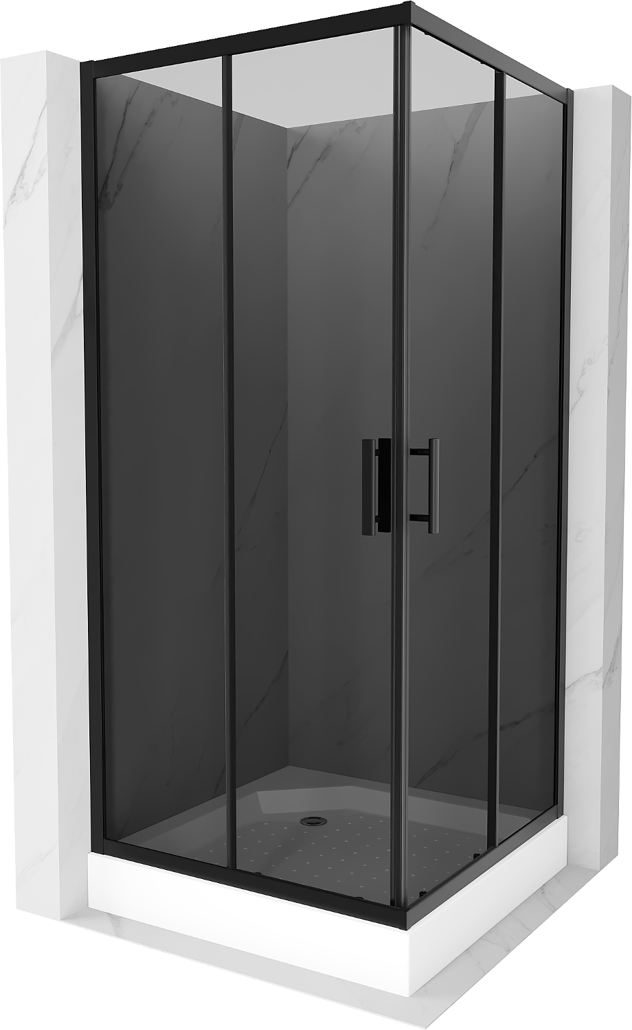 Mexen Rio cabina de ducha cuadrada de 90 x 90 cm, grafito, negra + plato de ducha Rio, blanco - 860-090-090-70-40-4510