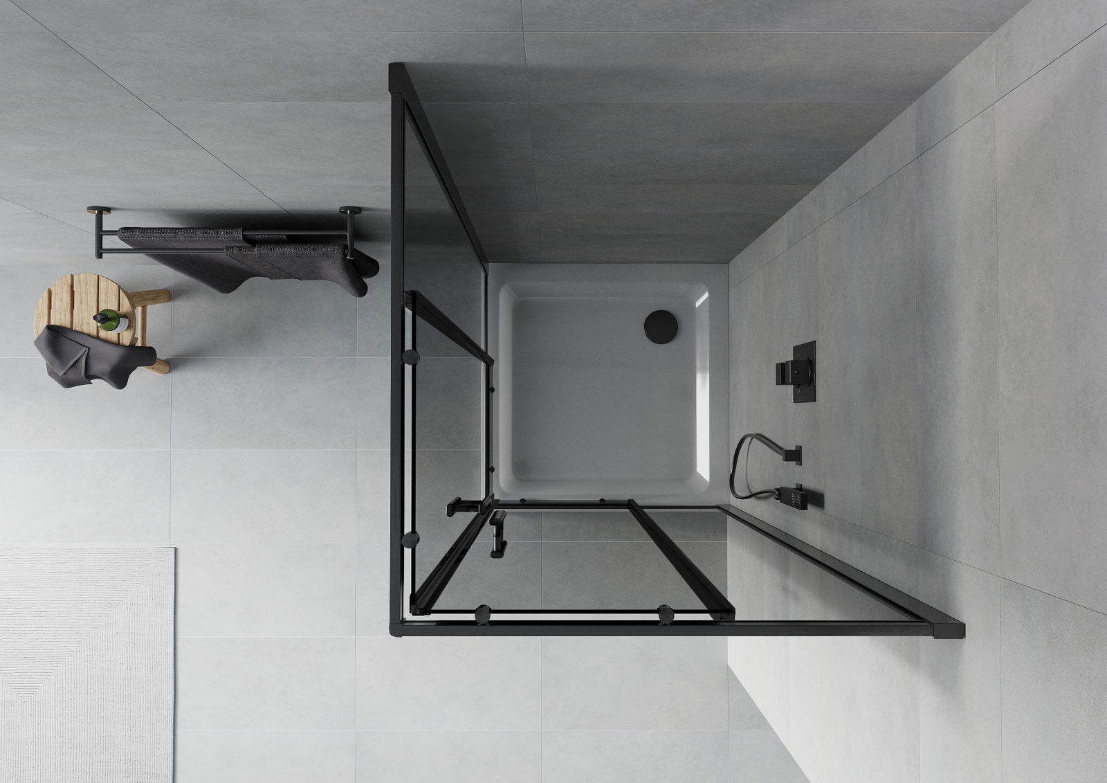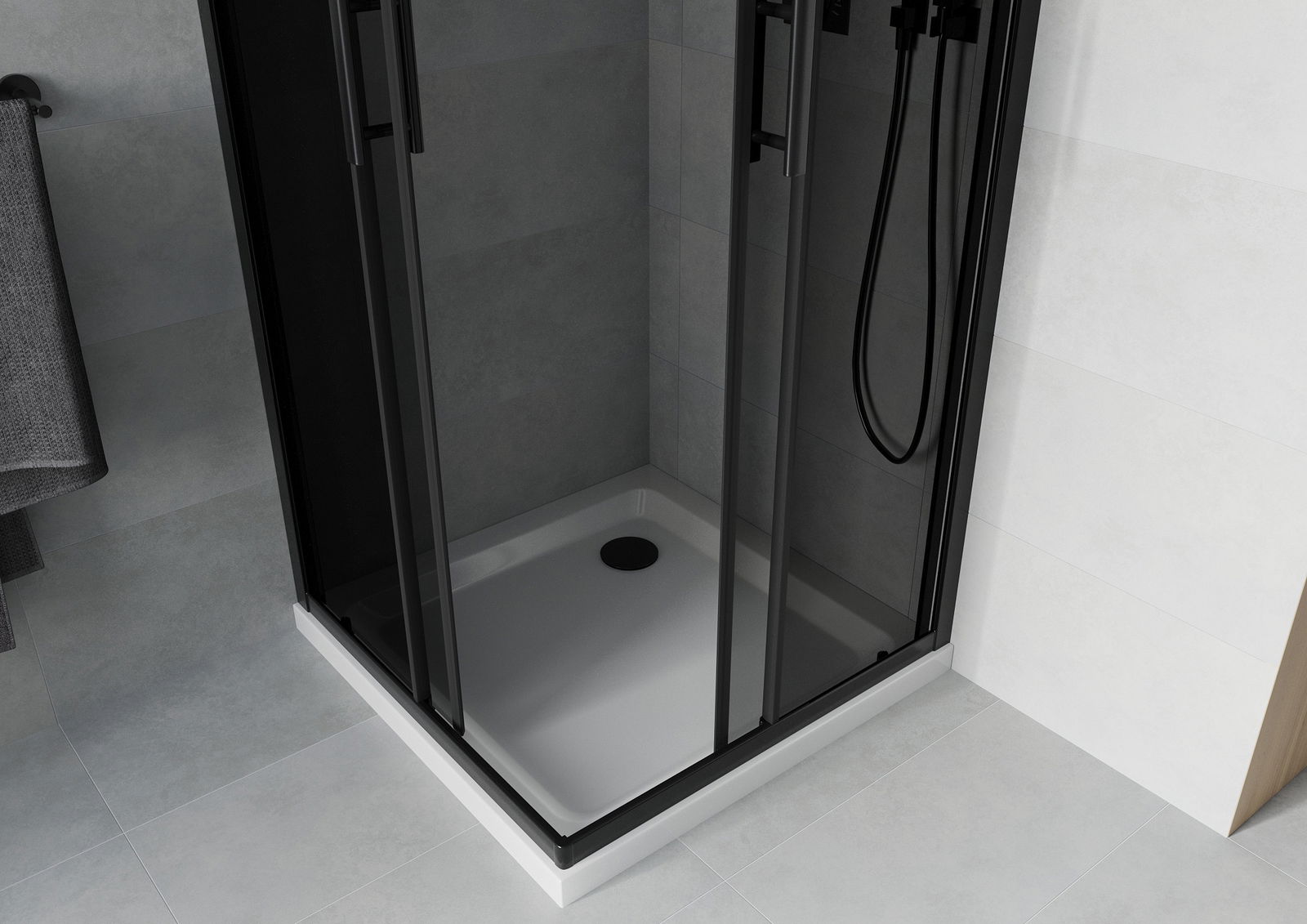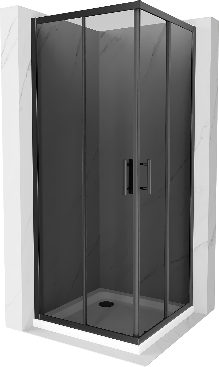 Mexen Rio cabina de ducha cuadrada 80 x 80 cm, grafito, negra + plato de ducha Flat, blanco - 860-080-080-70-40-4010B