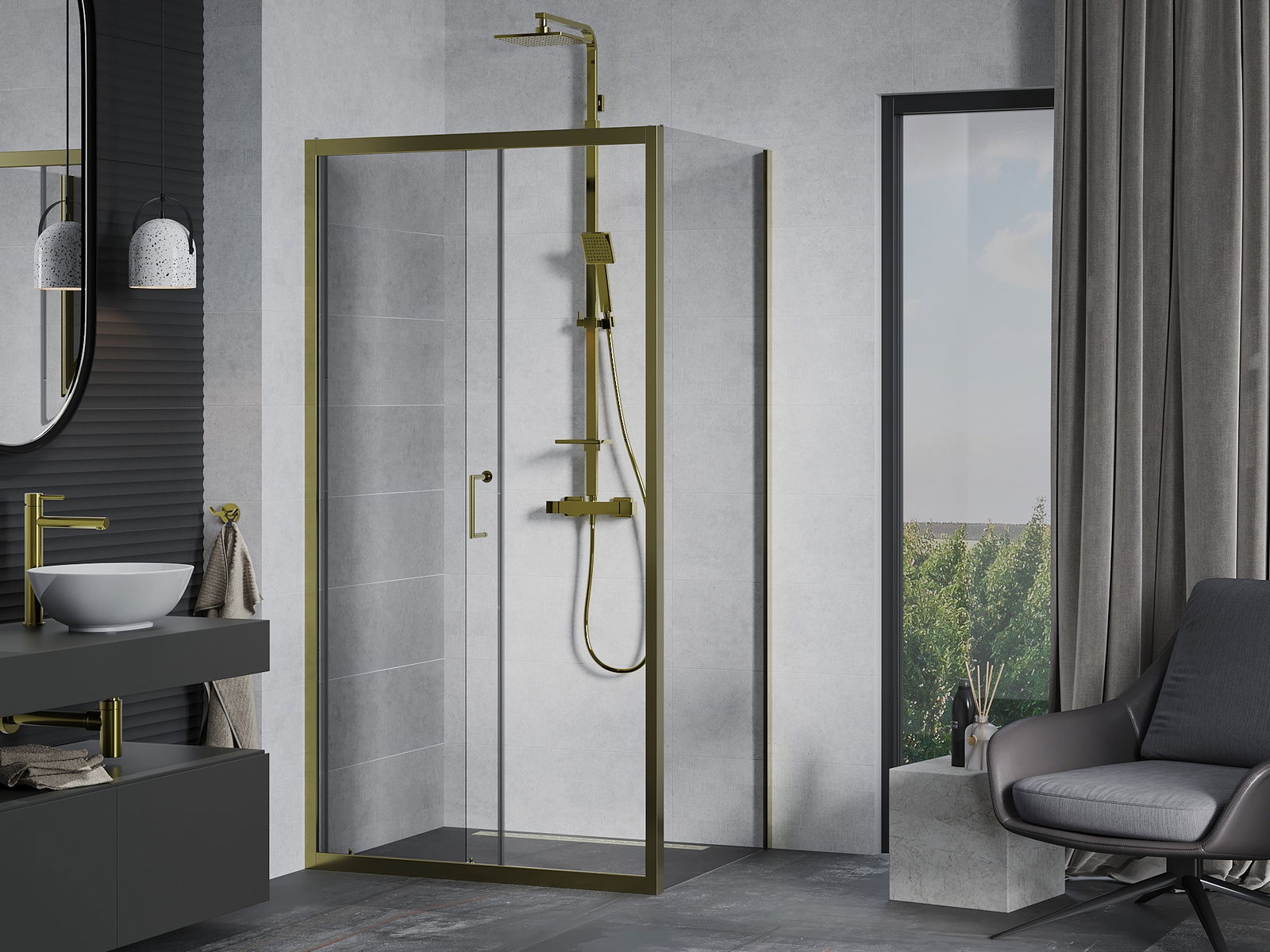 Un asa práctico y cómodo hecho de metal duradero y resistente. La forma moderna combinada con un acabado que se adapta al color de los perfiles le da a todo un aspecto moderno y estilizado, destacando la estética de cada baño.