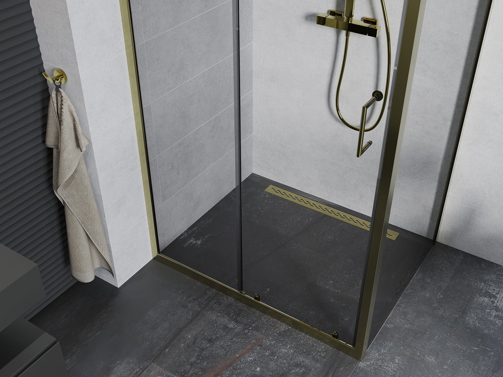 Las puertas corredizas se desplazan sobre guías especiales y no requieren espacio adicional para abrirse, por lo que son adecuadas para baños más pequeños. Gracias a los rodillos dobles de material plástico duradero, su movimiento es suave.