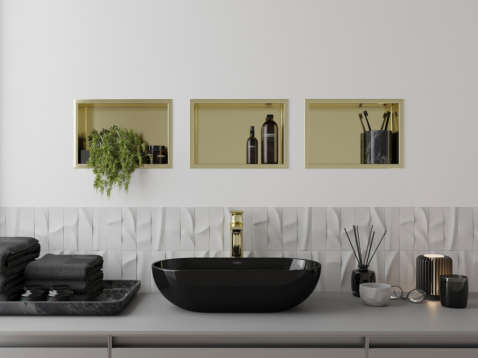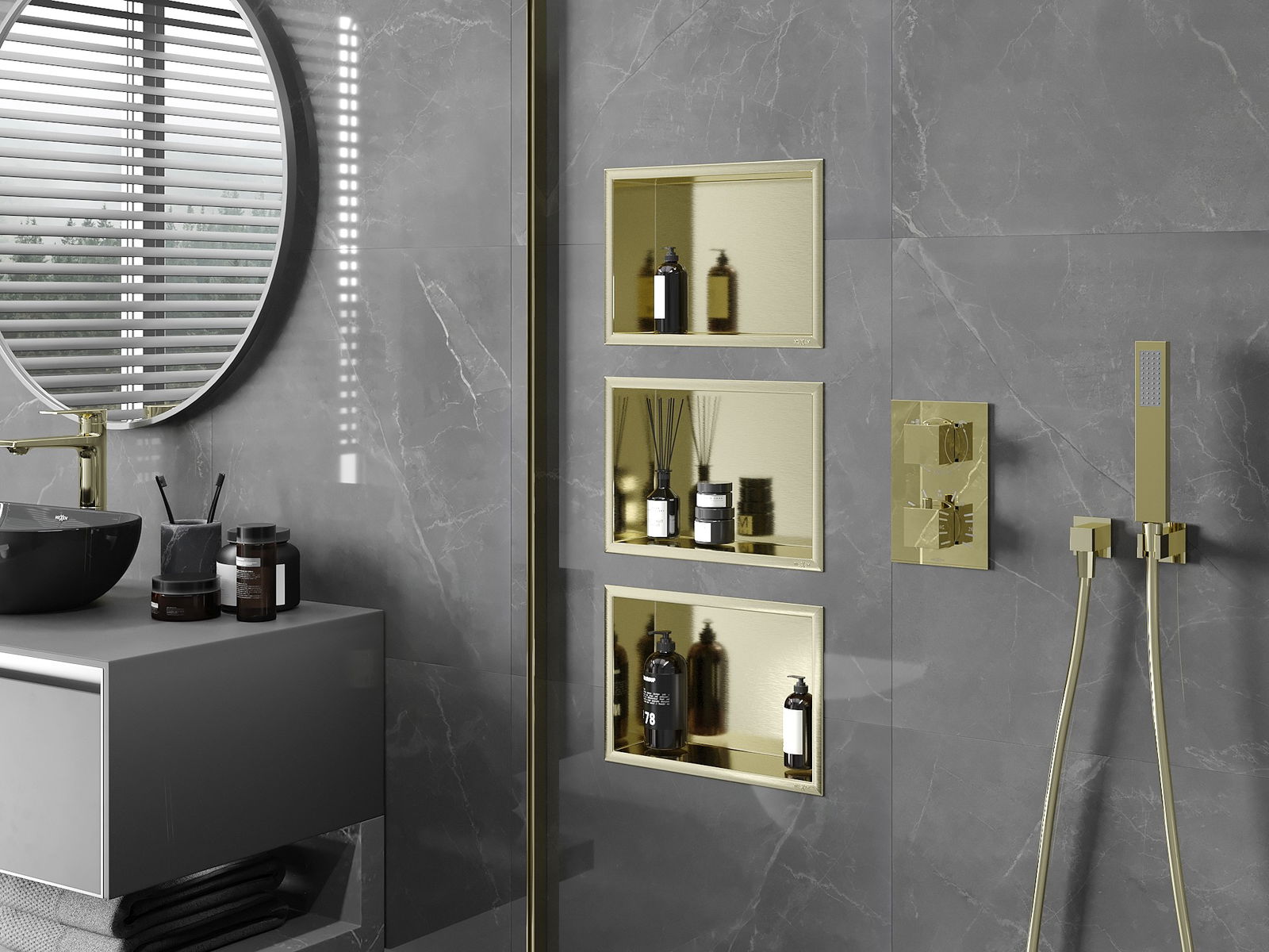 Mexen X-Wall-R estante empotrado con reborde 30 x 20 cm, oro cepillado - 1950302010