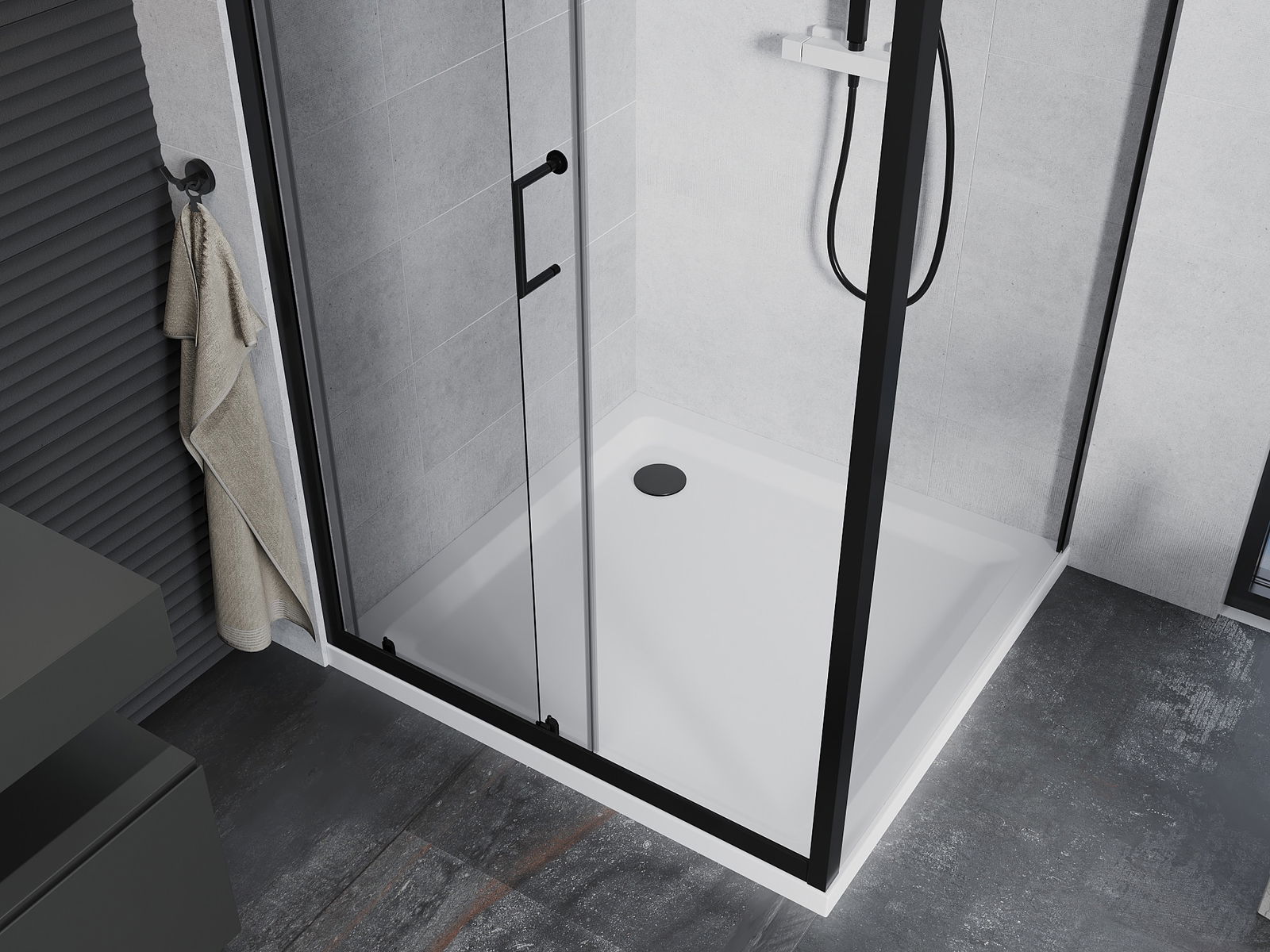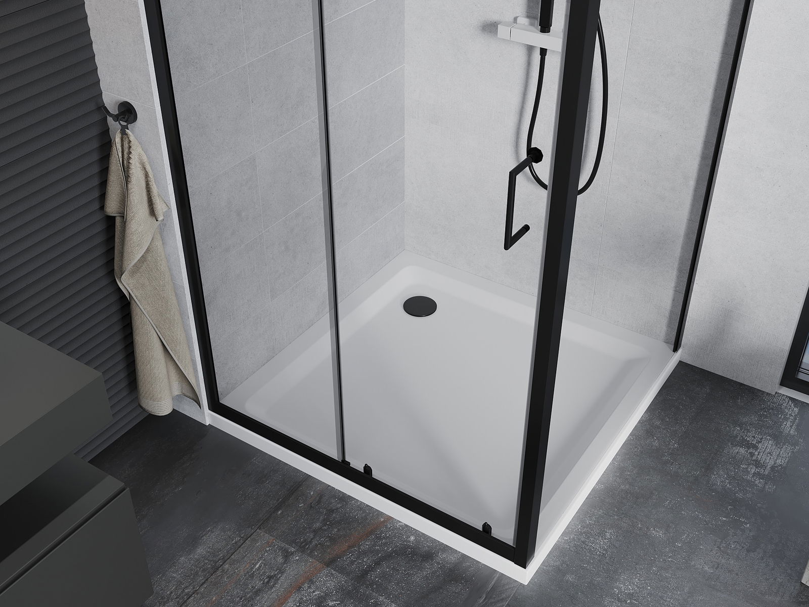 Mexen Apia cabina de ducha corredera 100 x 100 cm, transparente, negra + plato de ducha Flat, blanco - 840-100-100-70-00-4010B