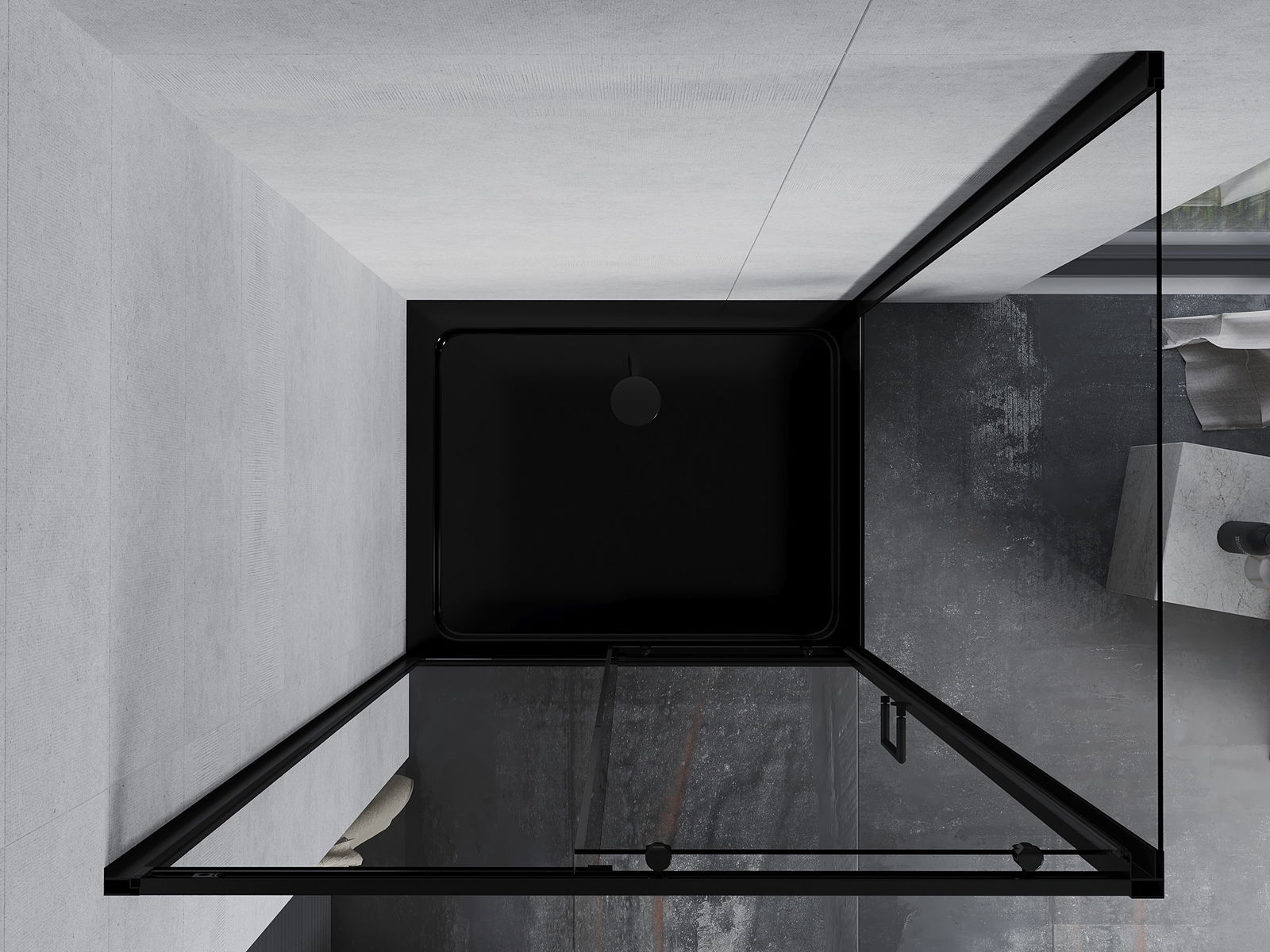 Mexen Apia cabina de ducha corredera 110 x 90 cm, transparente, negra + plato de ducha Flat, negro - 840-110-090-70-00-4070B