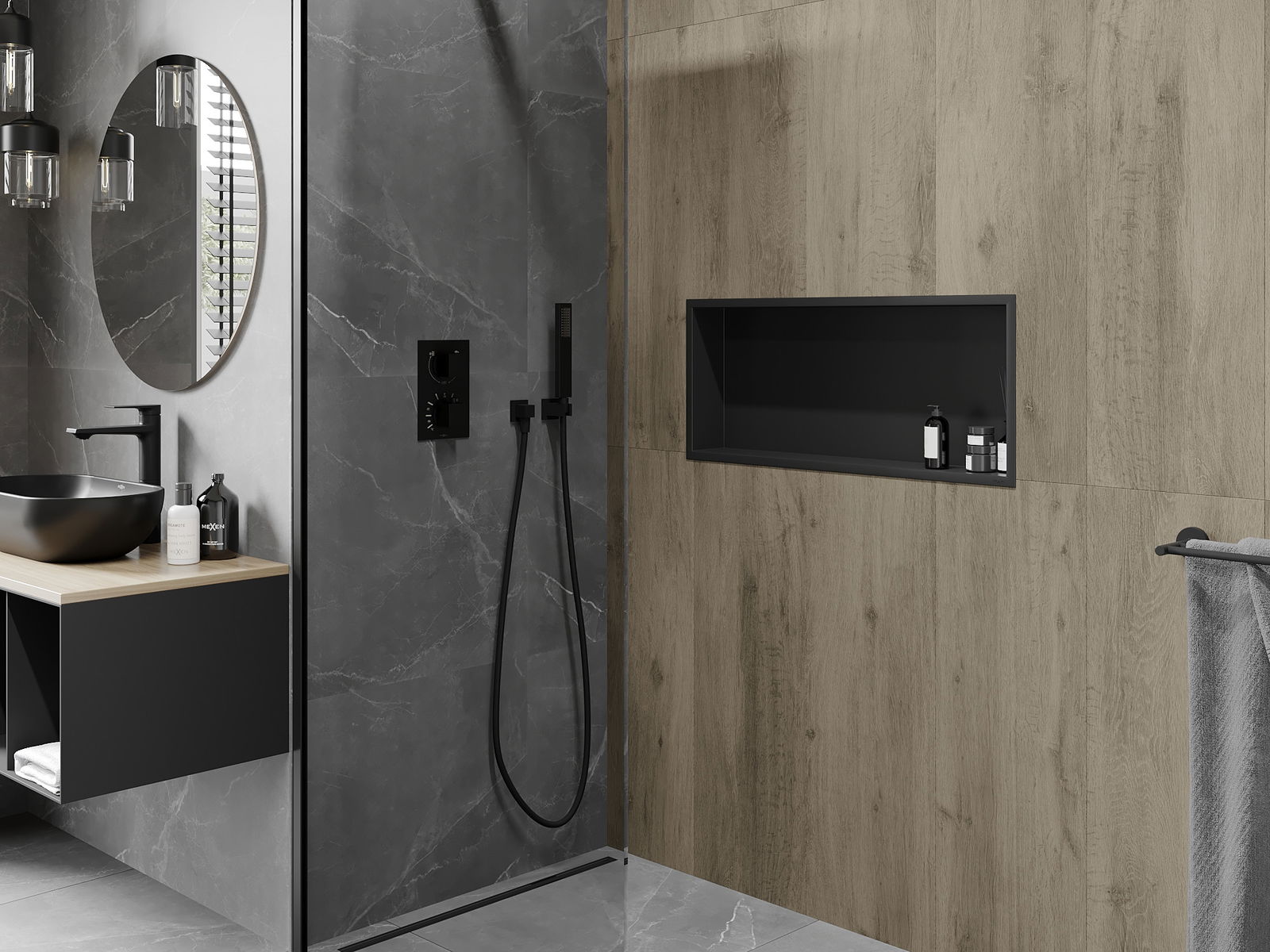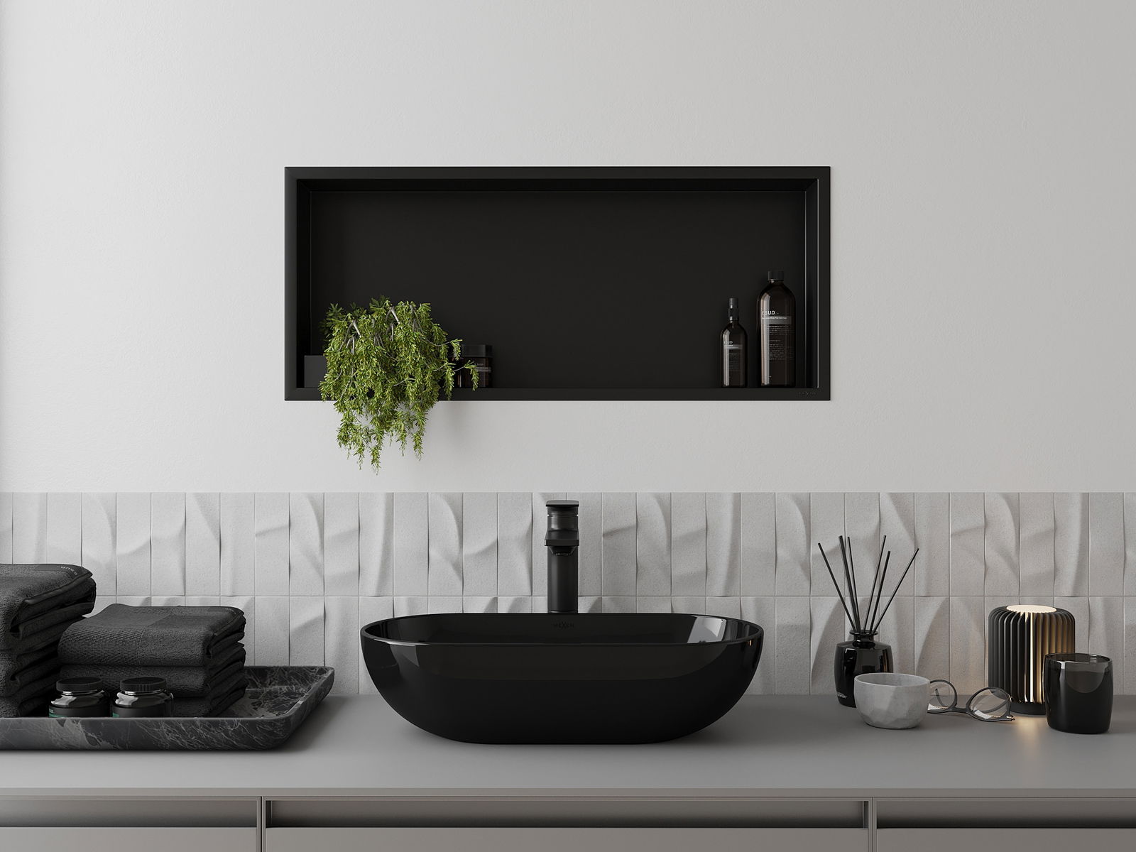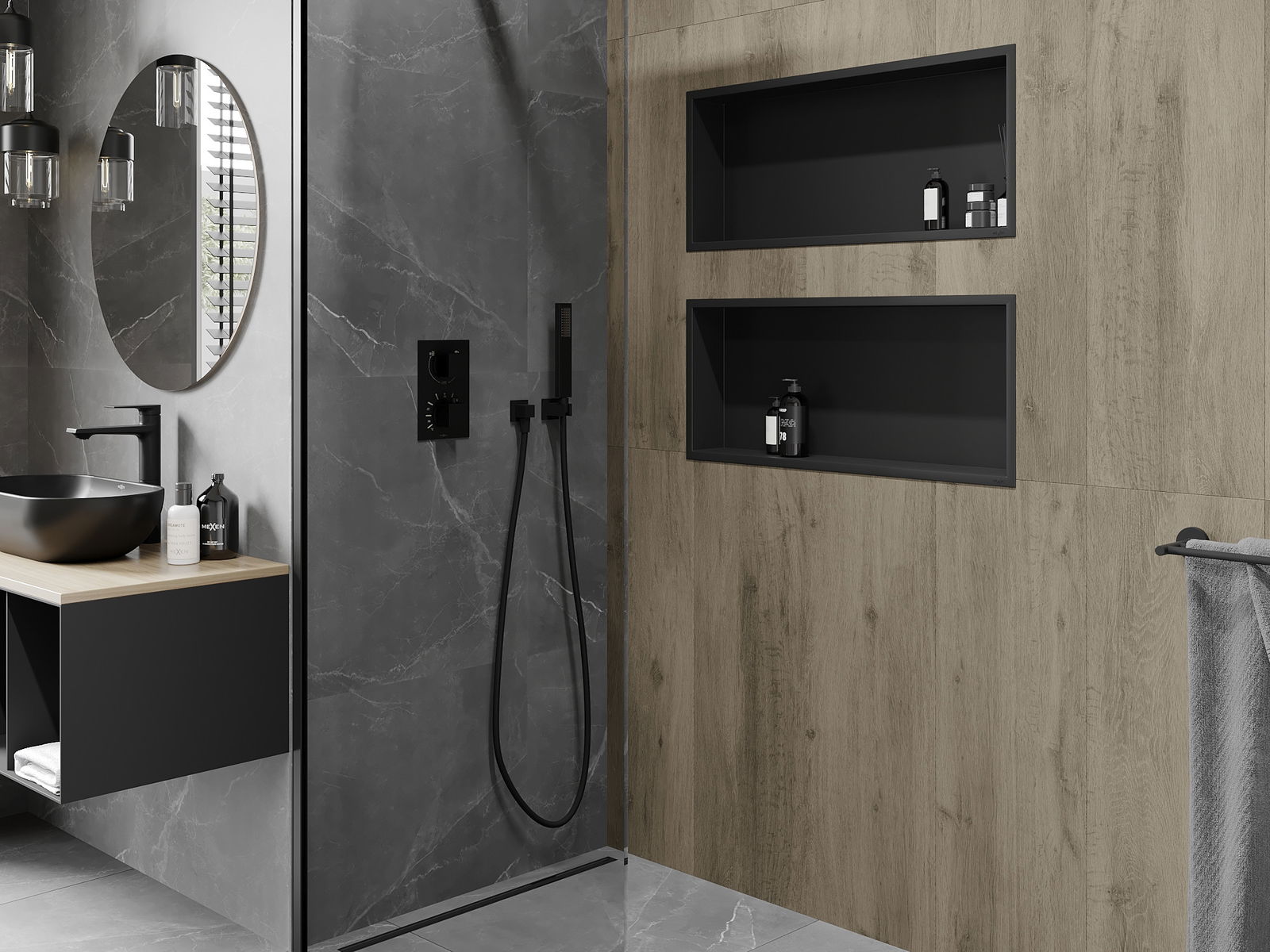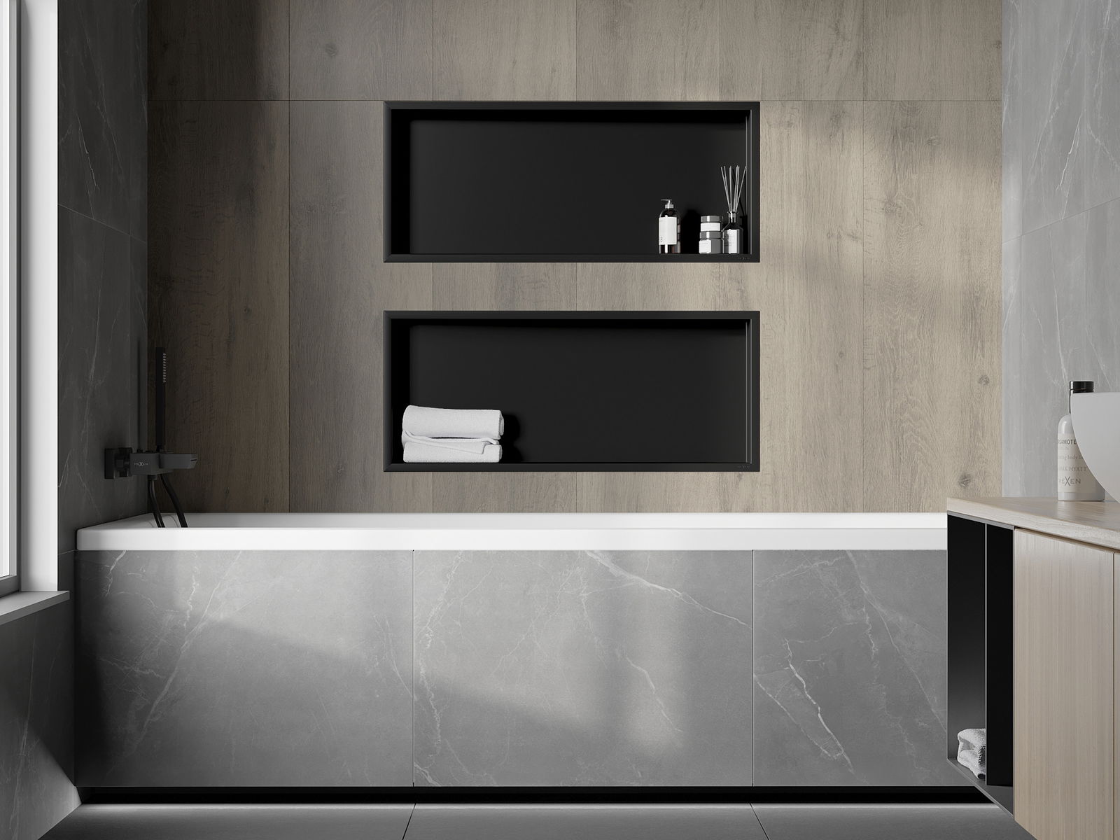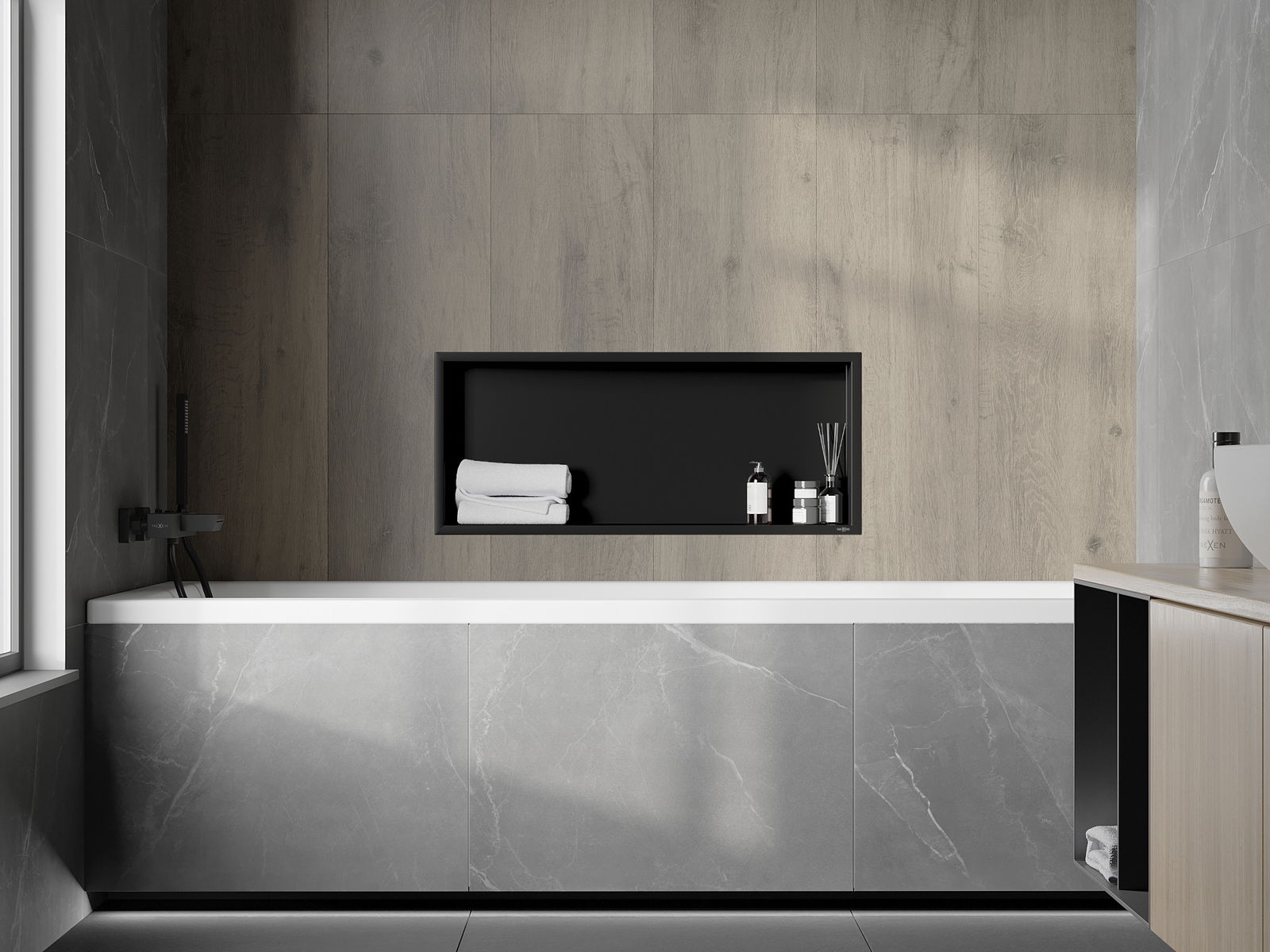 Mexen X-Wall-R estante empotrado con reborde 75 x 30 cm, negro - 1970753010