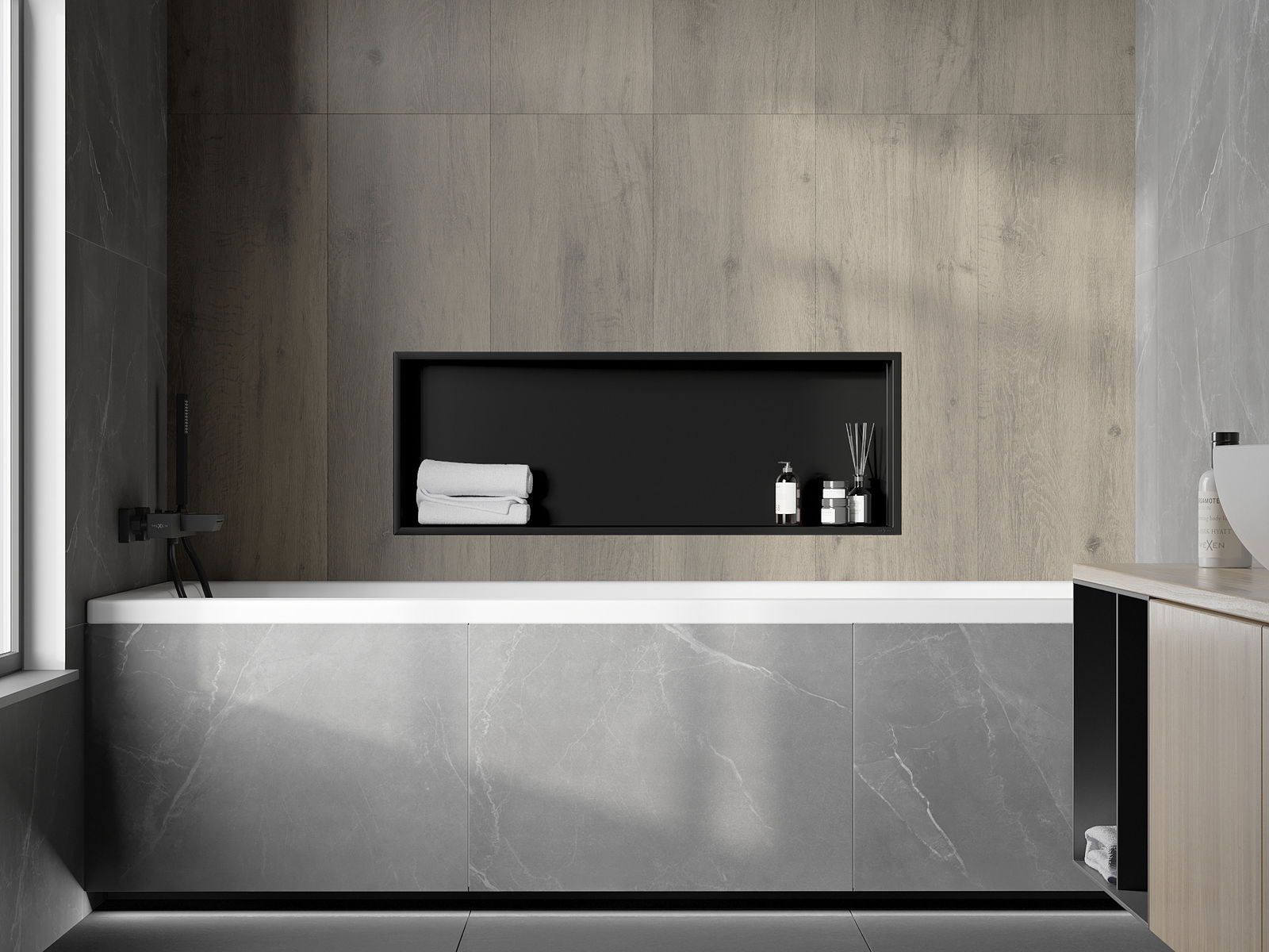 Posibilidad de montaje en la pared o en una construcción especialmente preparada. Es una solución extremadamente moderna y funcional, que permite ahorrar espacio y adaptar el producto a la estética del interior y crear una composición coherente.