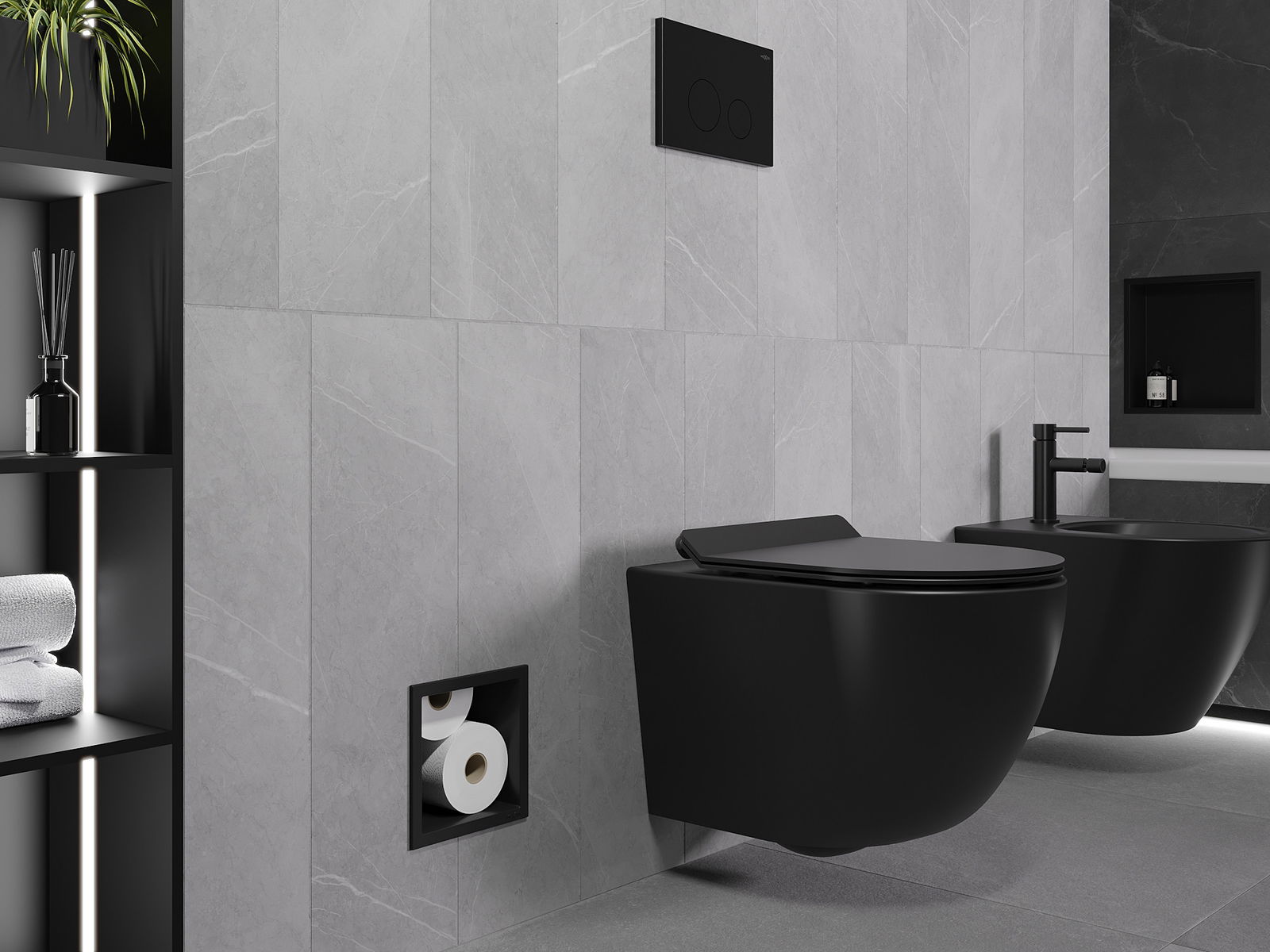 Posibilidad de montaje en la pared o en la estructura empotrada. Es una solución extremadamente moderna y funcional, que permite ahorrar espacio y adaptar el producto a la estética interior para crear una composición coherente.