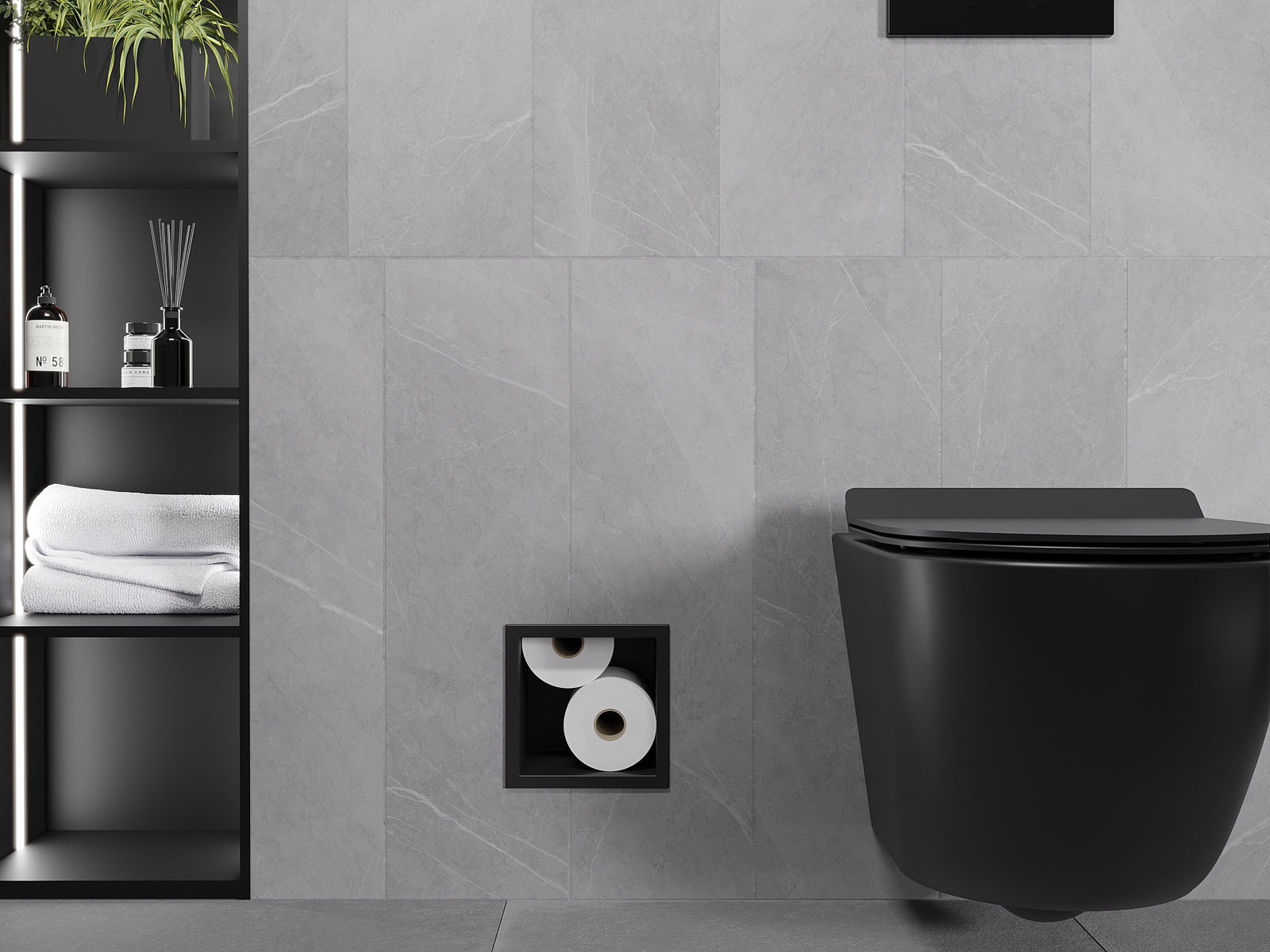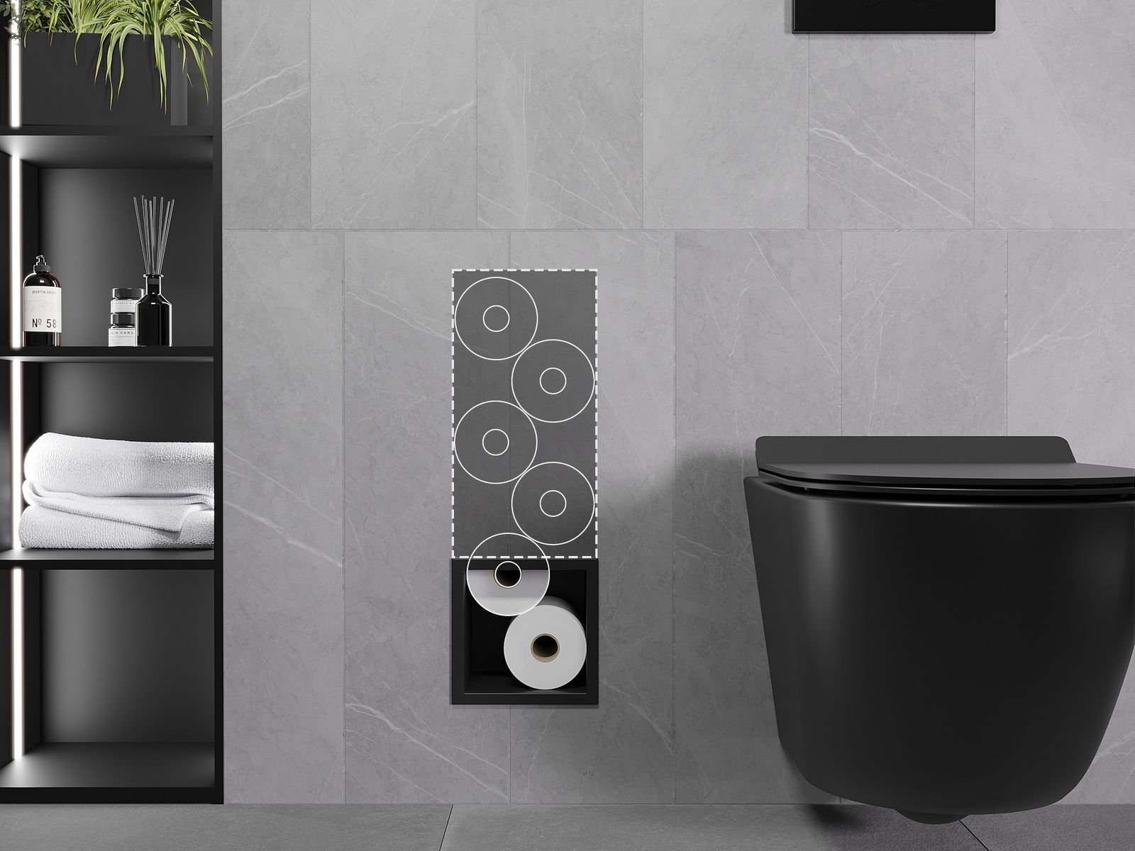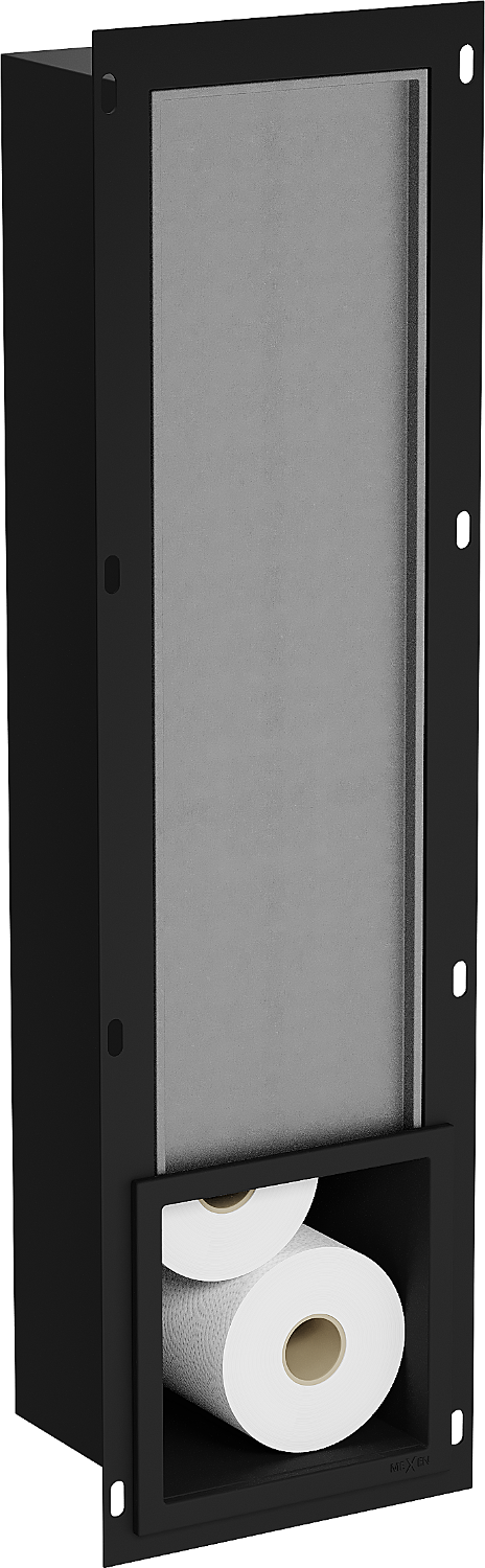 X-wall es un soporte de papel higiénico práctico con un dispensador integrado en la pared. El nuevo rollo siempre está al alcance de la mano, y el espacio anteriormente destinado para almacenar papel higiénico puede ser utilizado de otra manera.