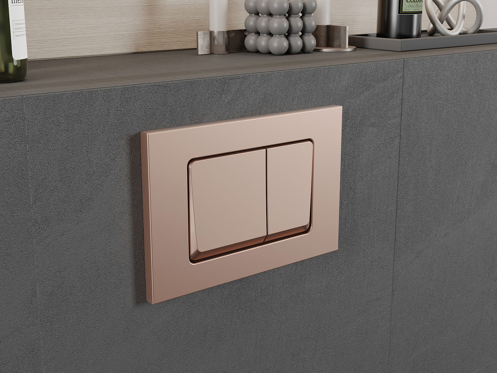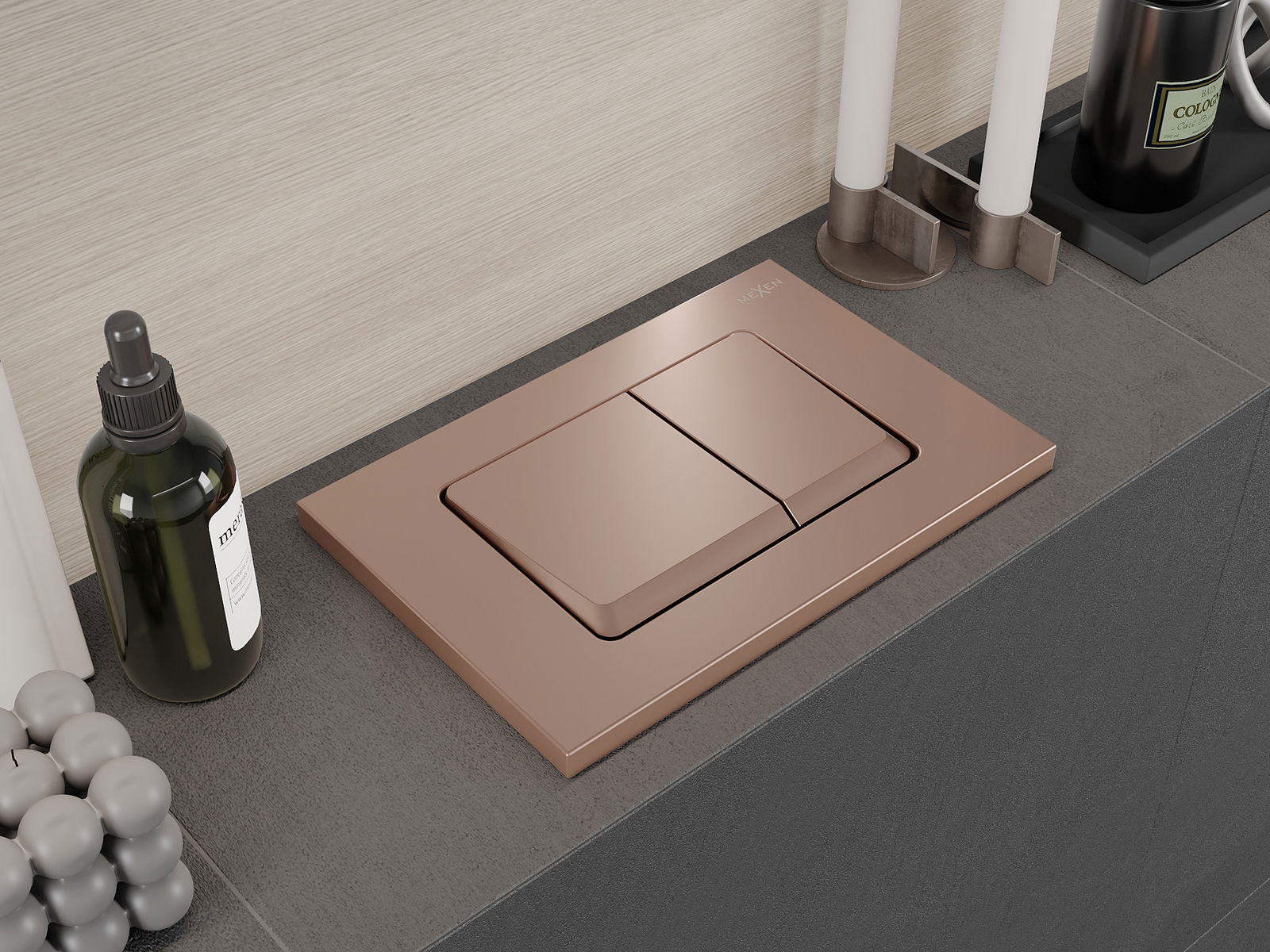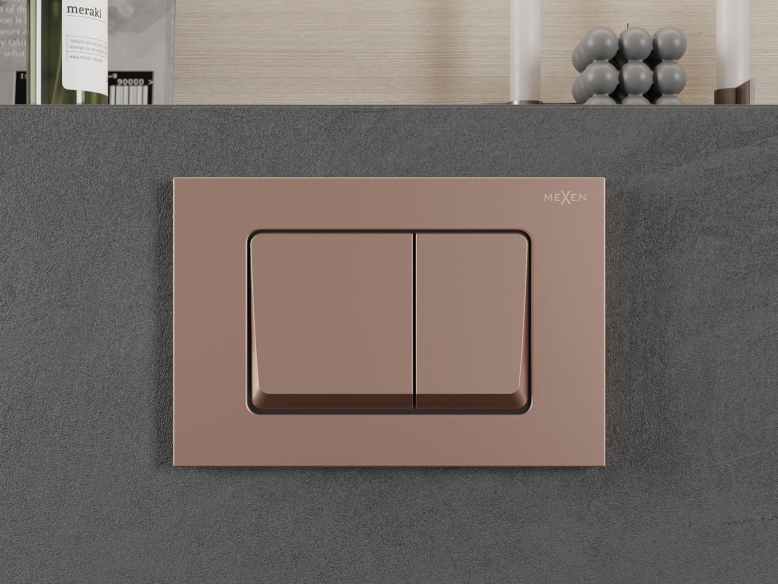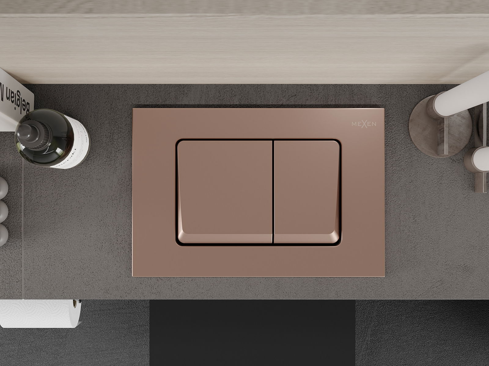 El botón está diseñado para los marcos Mexen de la serie XS. Puede montarse tanto desde el frente como desde la parte superior del marco, lo que aumenta su versatilidad. Esta solución facilita la instalación en diversas condiciones de montaje. Gracias a esto, el manejo del enjuague es cómodo e intuitivo.