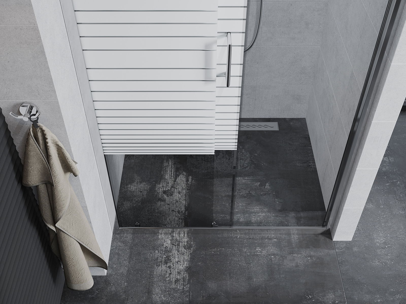Un asa práctico y cómodo hecho de metal duradero y resistente. La forma moderna combinada con un acabado que se adapta al color de los perfiles le da a todo un aspecto moderno y estilizado, destacando la estética de cada baño.