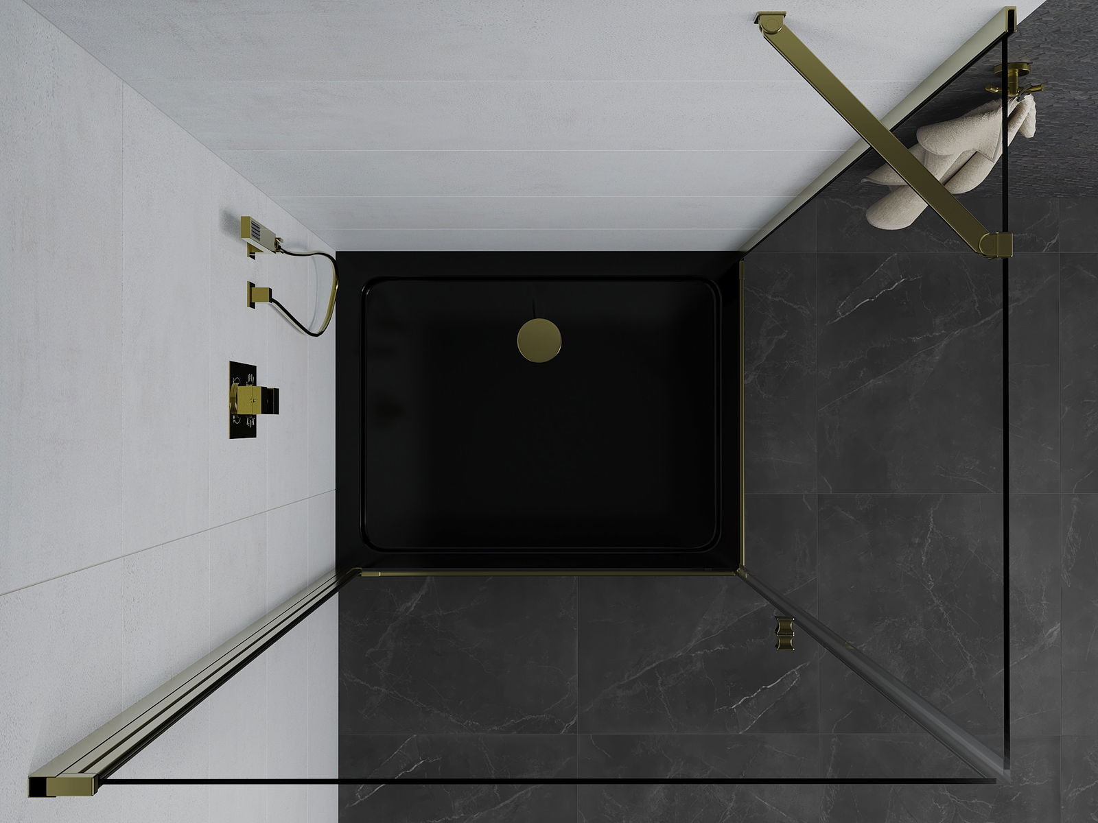 Mexen Pretoria cabina de ducha abatible 70 x 90 cm, transparente, oro + bandeja de ducha Flat, negro - 852-070-090-50-00-4070G