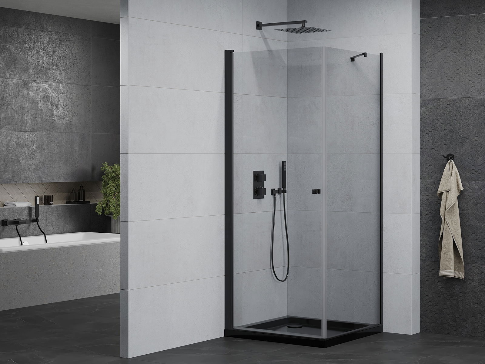 Mexen Pretoria cabina de ducha abatible 90 x 90 cm, transparente, negro + plato de ducha Flat, negro - 852-090-090-70-00-4070B