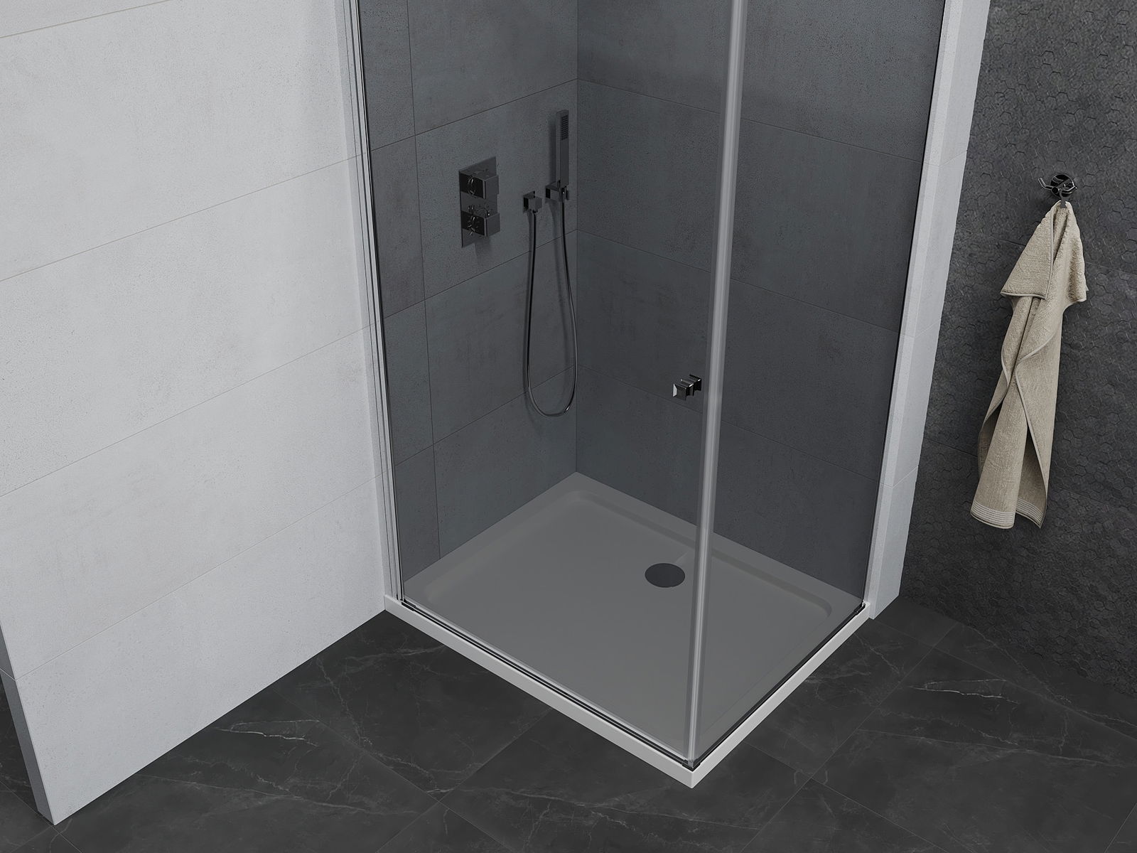 Un asa práctico y cómodo hecho de metal duradero y resistente. La forma moderna combinada con un acabado que se adapta al color de los perfiles le da a todo un aspecto moderno y estilizado, destacando la estética de cada baño.
