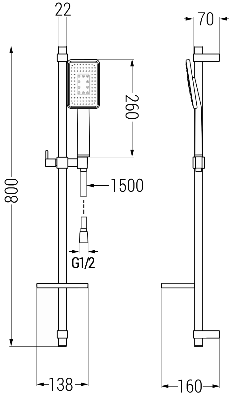 Una conexión con rosca de 1/2" es un elemento estándar comúnmente utilizado en instalaciones de agua internas. Gracias a esto, la conexión e instalación de otros elementos de la ducha es mucho más fácil e intuitiva.