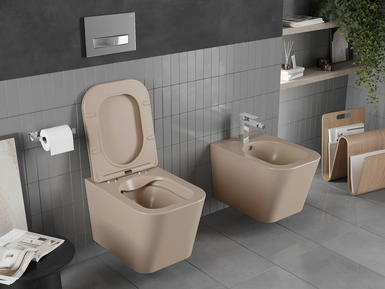 Mexen Teo taza de WC sin reborde con asiento de cierre suave slim, duroplástico, capuchino mate - 30854064