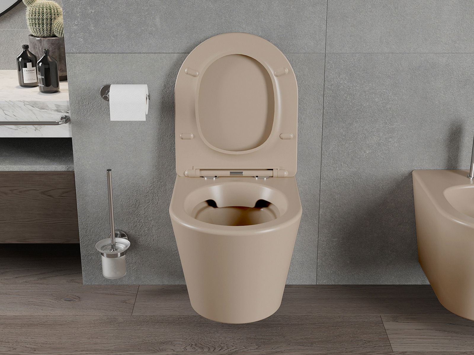 La superficie mate de la cerámica resalta perfectamente el carácter del color del producto, dándole un acabado excepcional y distintivo. La estructura sutil de la cerámica mate aporta elegancia al baño, creando un espacio estético.