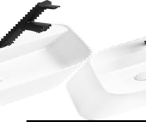 El lavabo tiene un agujero en el que podemos instalar el grifo. Esto permite ahorrar un valioso espacio en el baño y resaltar su estética. Esta solución también facilita el mantenimiento de la limpieza alrededor del lavabo.