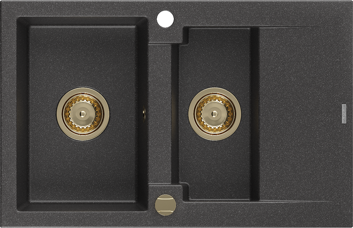 Mexen Gaspar fregadero de granito de 1,5 senos con escurridor 737 x 475 mm, negro moteado, sifón dorado - 6507731505-76-G