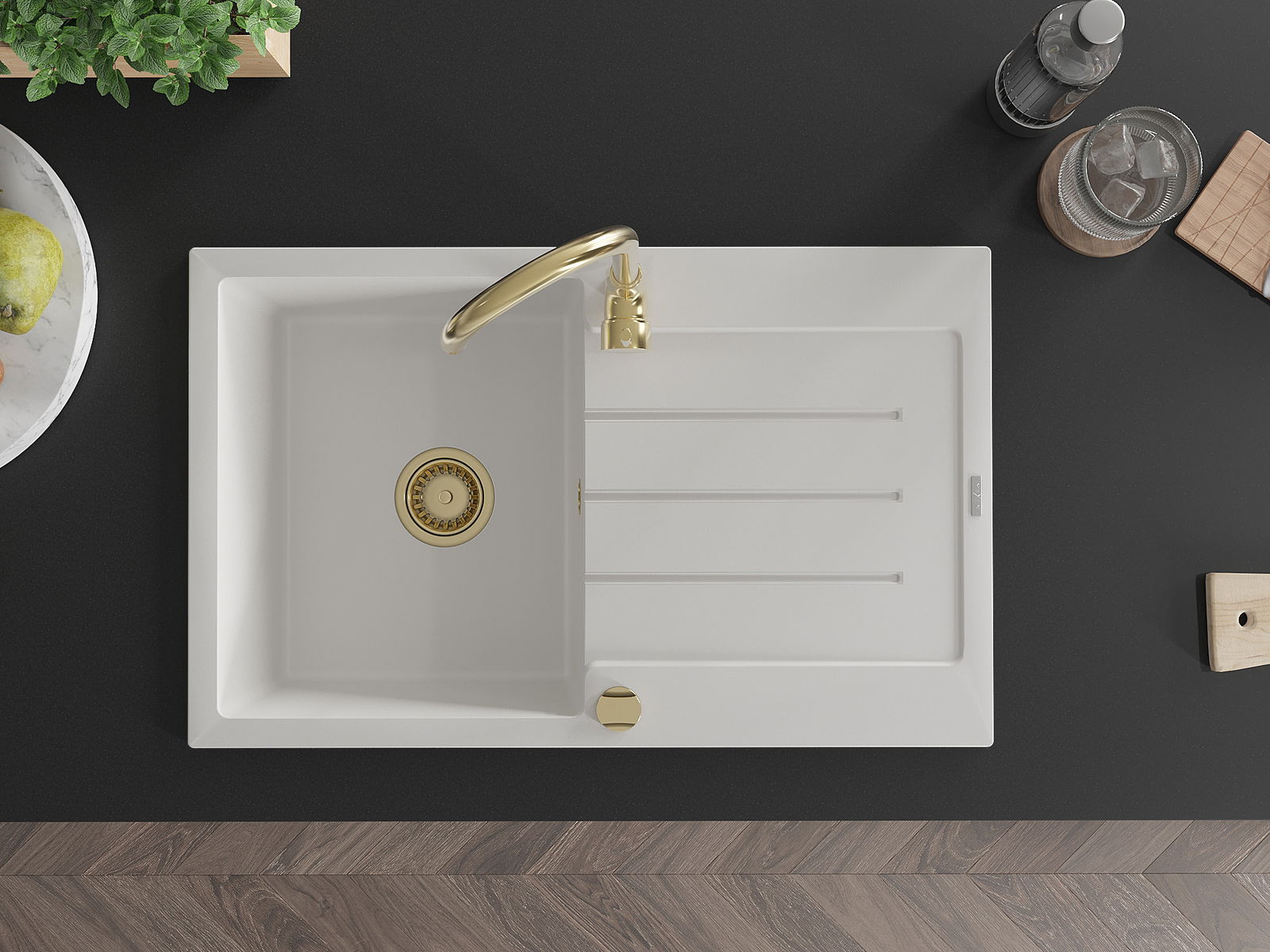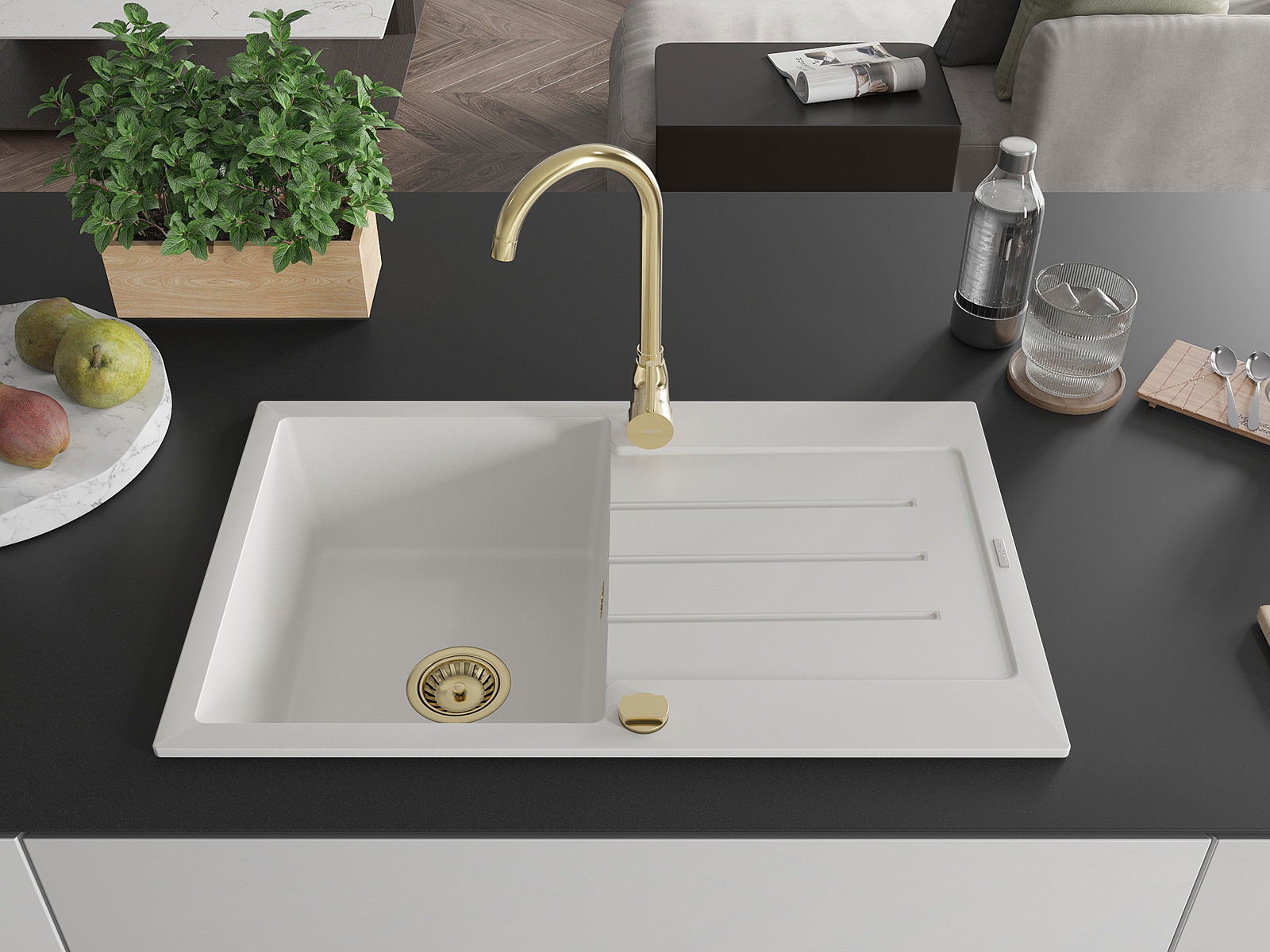 El fregadero está hecho de granito de alta calidad. Es un complemento elegante y, sobre todo, práctico para cualquier cocina, independientemente de su estilo. La alta calidad y durabilidad del granito aseguran un uso prolongado durante años.