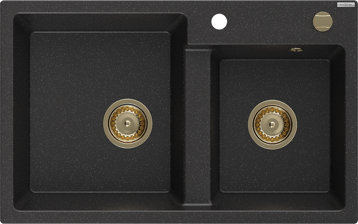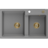 Mexen Tomas fregadero de granito de 2 compartimentos 800 x 500 mm, negro/plateado metálico, sifón dorado - 6516802000-73-G