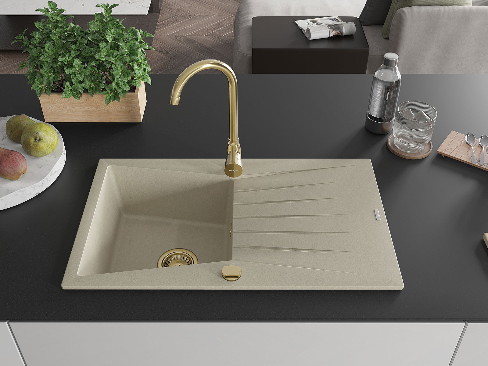 El fregadero está hecho de granito de alta calidad. Constituye un complemento elegante y, sobre todo, práctico para cualquier cocina, independientemente de su estilo. La alta calidad y durabilidad del granito aseguran un uso durante muchos años.