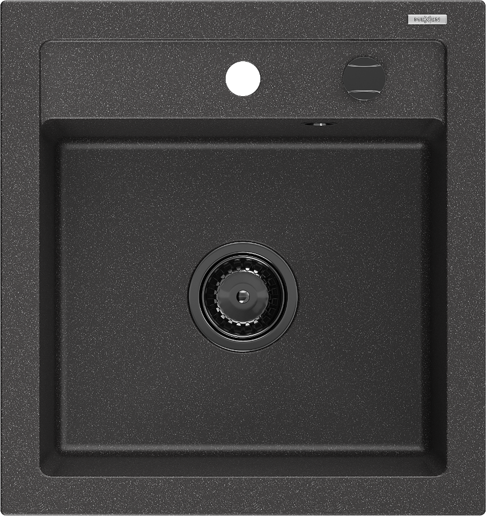 Mexen Vito fregadero de granito de 1 seno 520 x 490 mm, negro moteado, sifón negro - 6503521000-76-B