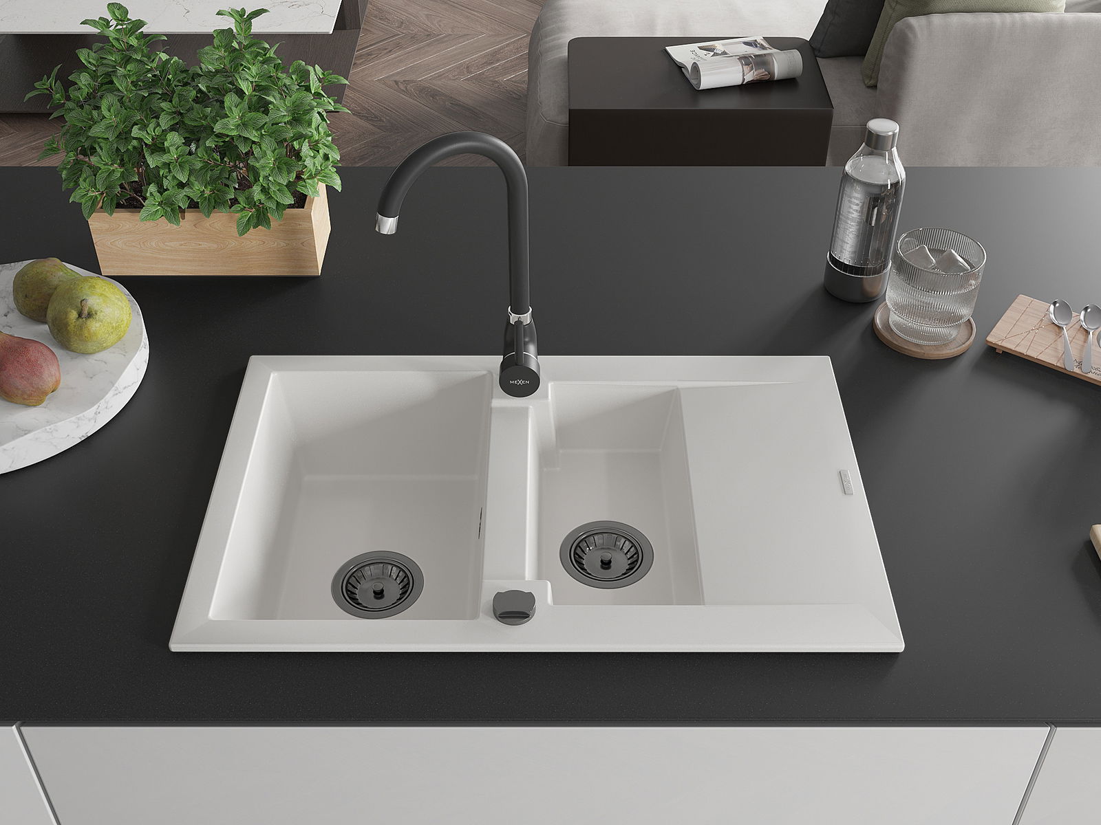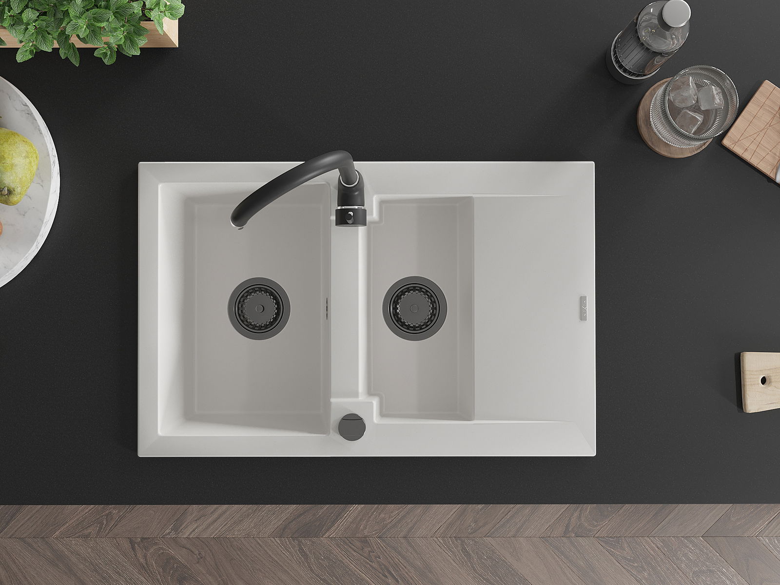 El fregadero está hecho de granito de alta calidad. Constituye un complemento elegante y, sobre todo, práctico para cualquier cocina, independientemente de su estilo. La alta calidad y durabilidad del granito aseguran un uso durante muchos años.