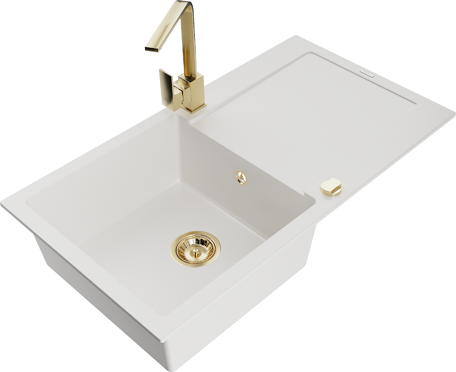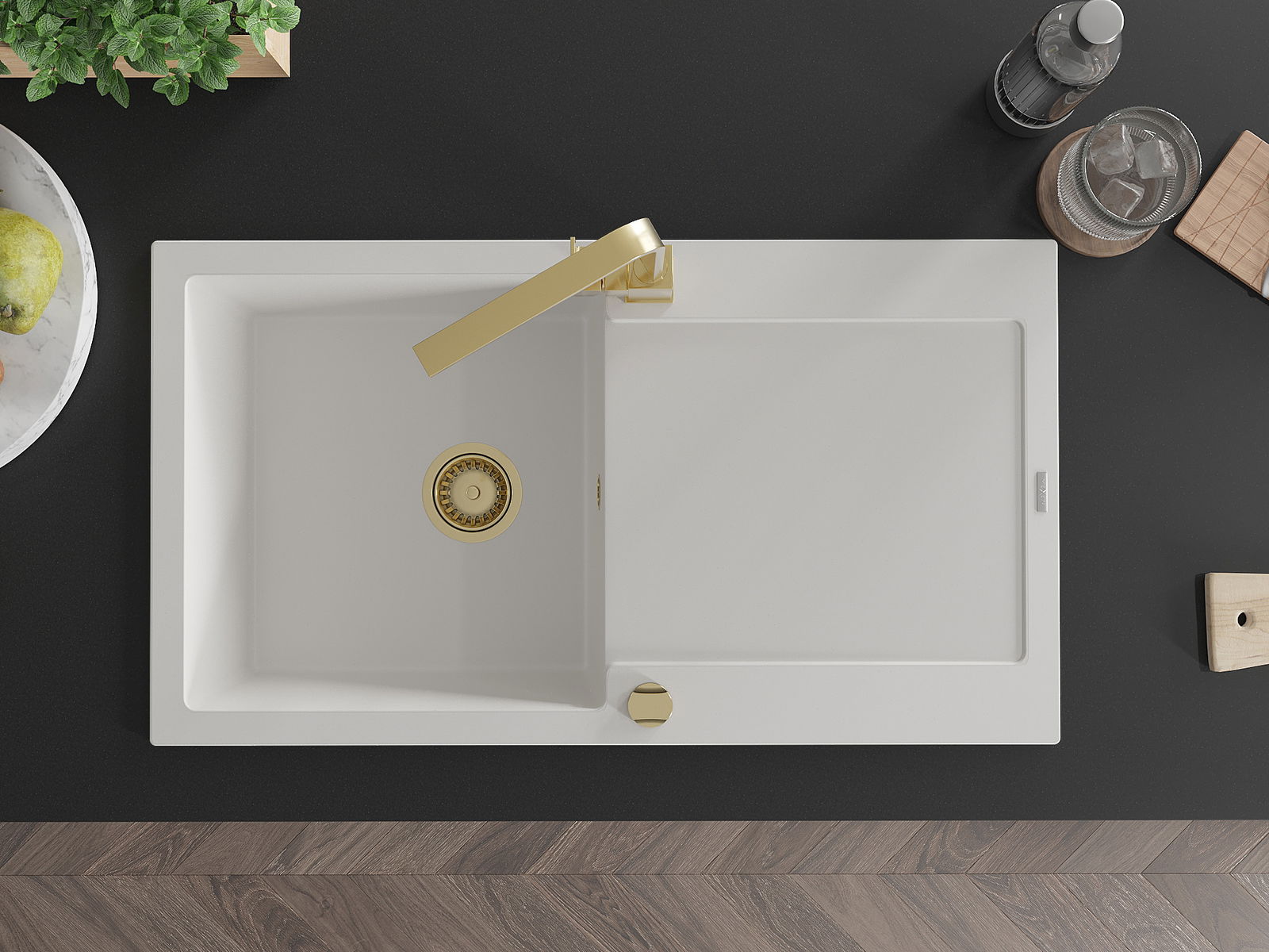 Mexen Leo fregadero de granito de 1 cubeta con escurridor y grifo de cocina Rita, blanco - 6501-20-670300-50